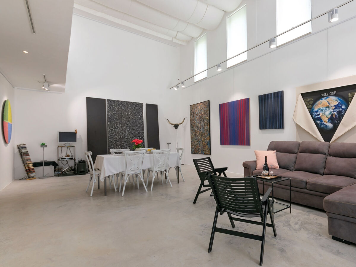 Cuisine ouverte (four, 2 plaques vitrocéramiques, bouilloire électrique, congélateur, cafetière électrique).