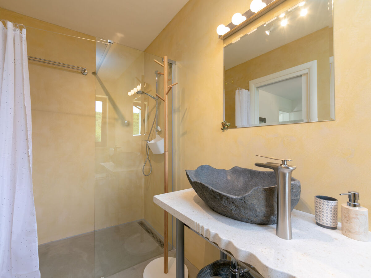 Douche extérieure, terrasse (35 m2), meubles de jardin, barbecue.