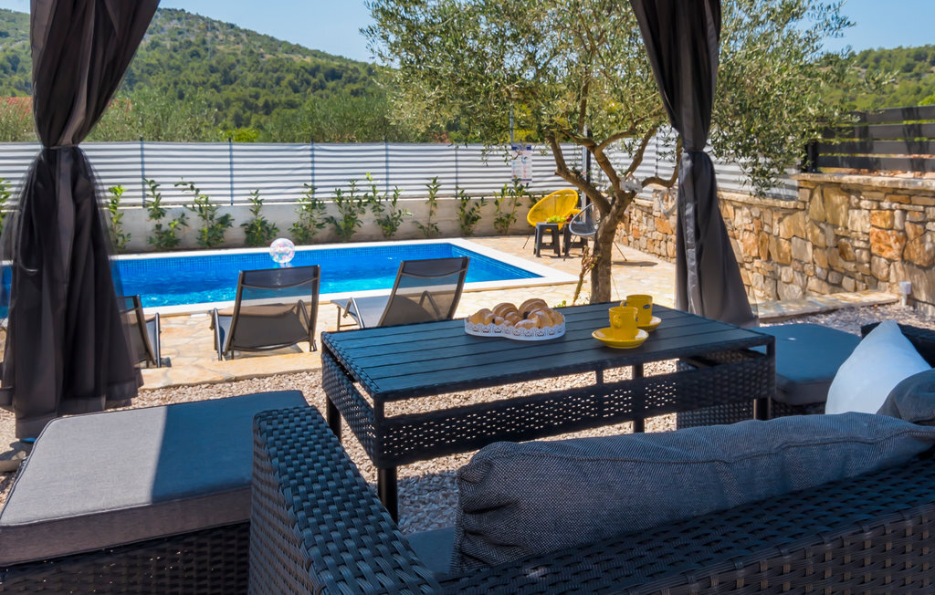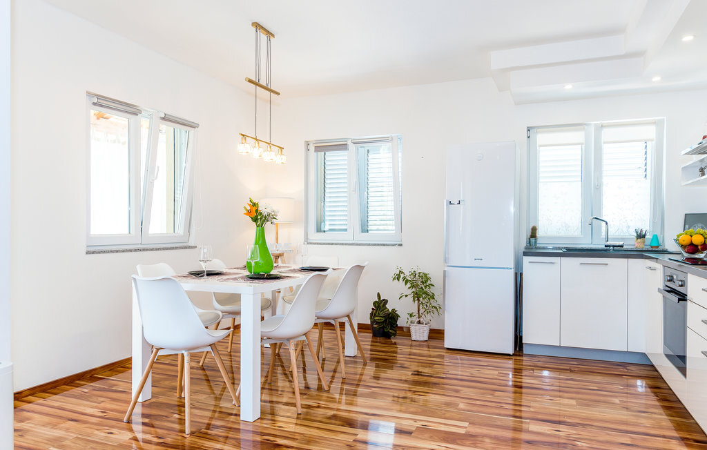 Située dans la petite ville de Bilice, non loin de la pittoresque ville de Sibenik, cette belle maison vous permettra de passer des vacances inoubliables avec votre famille ou vos amis. Les pièces intérieures aménagées avec goût s'étendent sur le rez-de-chaussée et offrent beaucoup de confort.