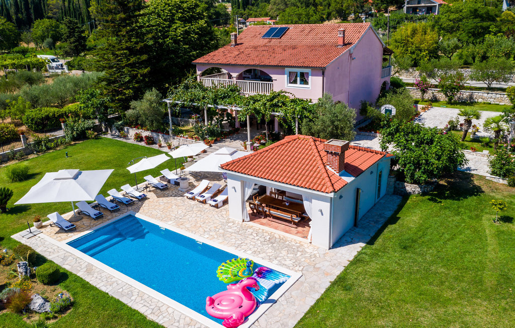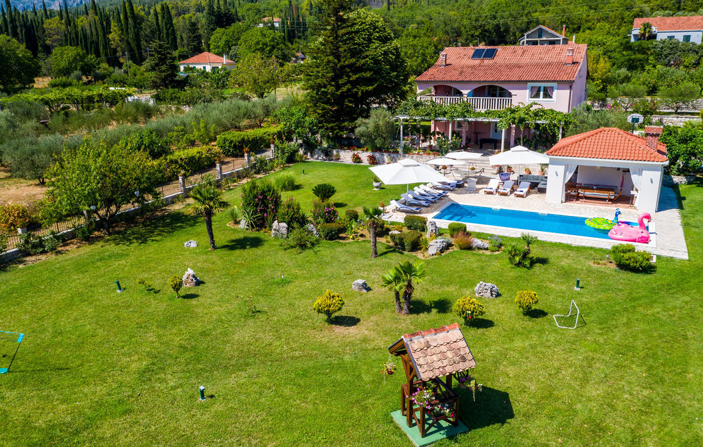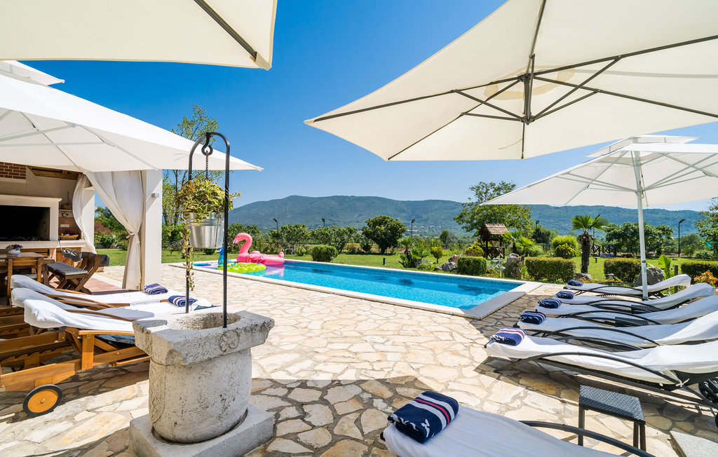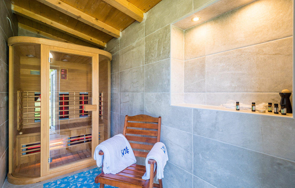 Bien-être à l'extérieur : Location de vacances disposant de chaises-longues et d'un ou plusieurs équipements tels que piscine extérieure, jacuzzi extérieur, lit à baldaquin de jardin etc...