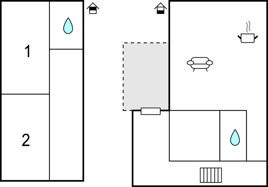 Cette belle maison de vacances s'étend sur deux étages et se trouve à quelques mètres de l'eau. Depuis le premier étage, vous avez une belle vue sur la mer et vous disposez de deux chambres à coucher, d'un salon avec cuisine, d'une salle de bains et d'un WC.