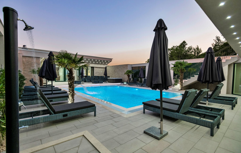 Bien-être à l'extérieur : Location de vacances disposant de chaises-longues et d'un ou plusieurs équipements tels que piscine extérieure, jacuzzi extérieur, lit à baldaquin de jardin etc...