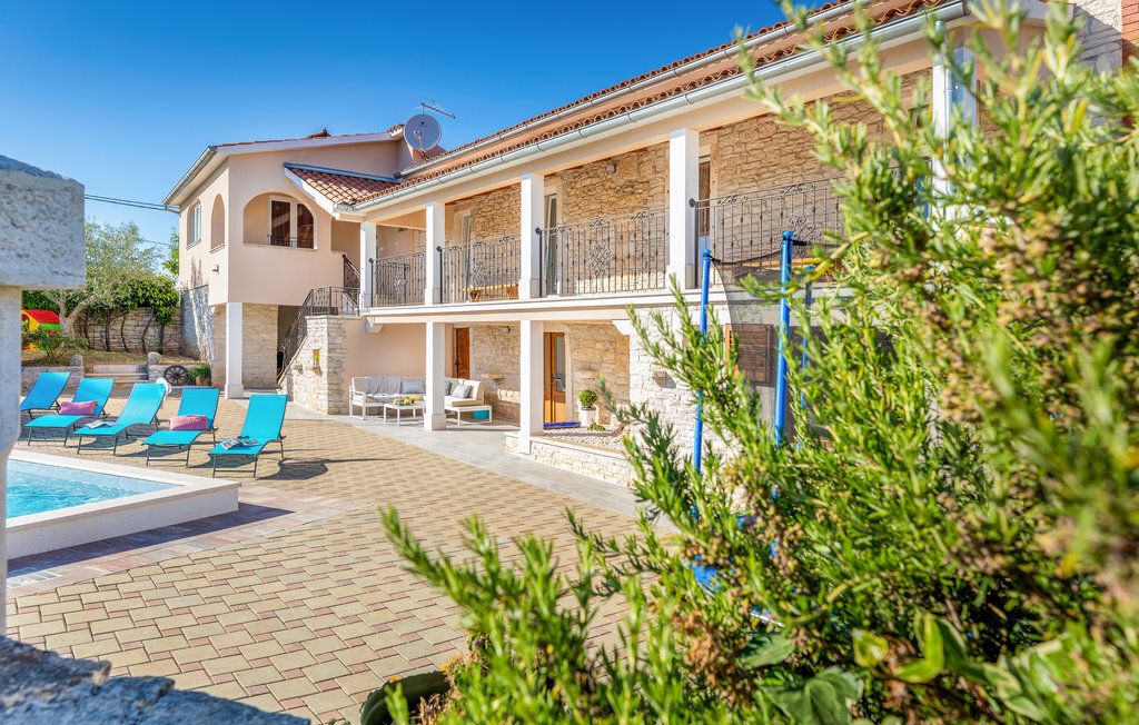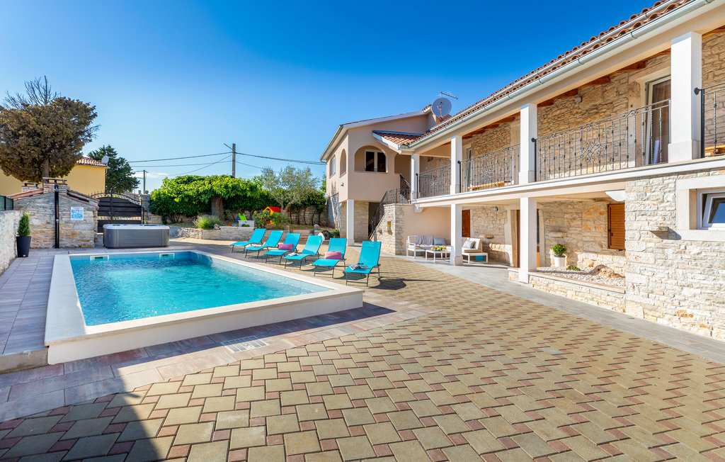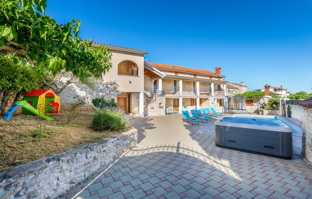 Bien-être à l'extérieur : Location de vacances disposant de chaises-longues et d'un ou plusieurs équipements tels que piscine extérieure, jacuzzi extérieur, lit à baldaquin de jardin etc...