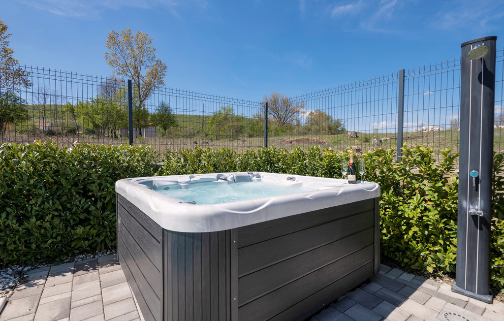 Bien-être à l'extérieur : Location de vacances disposant de chaises-longues et d'un ou plusieurs équipements tels que piscine extérieure, jacuzzi extérieur, lit à baldaquin de jardin etc...