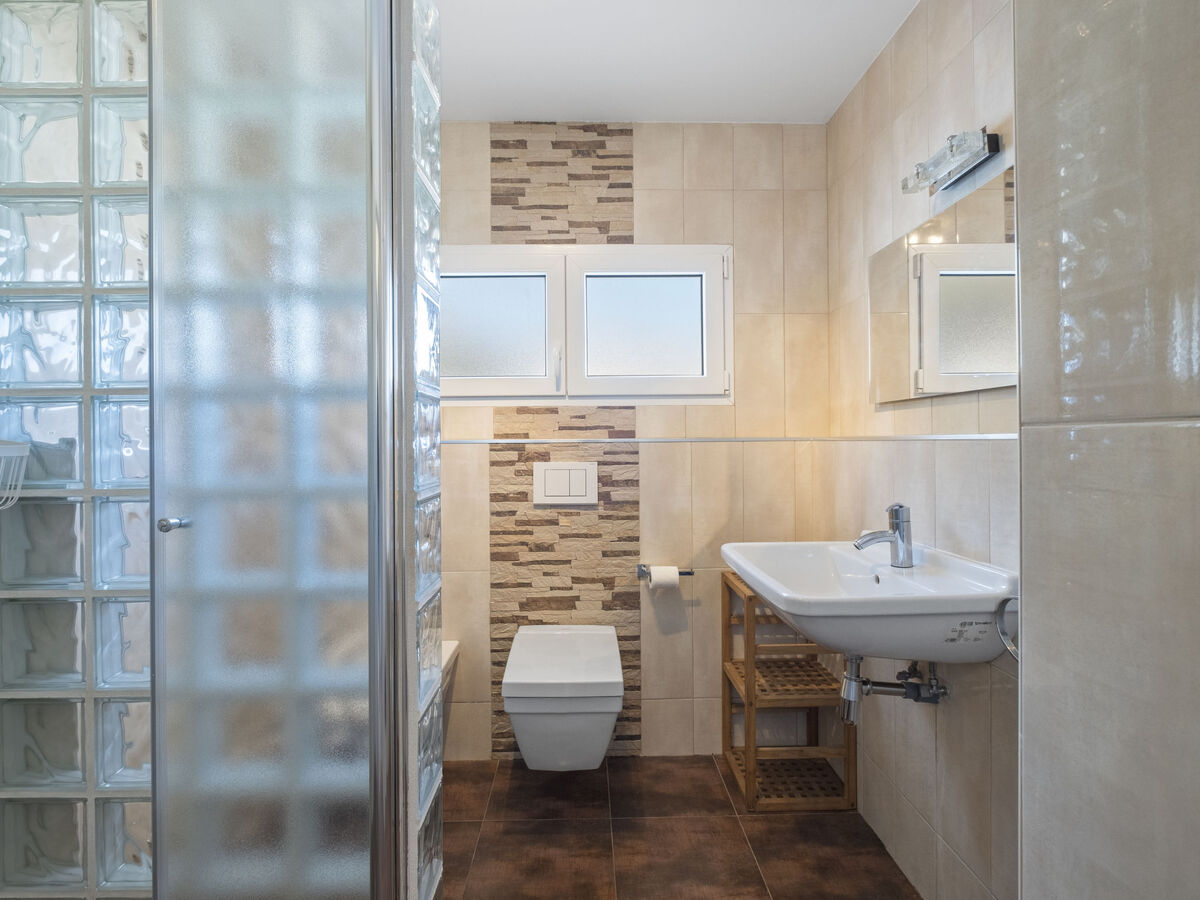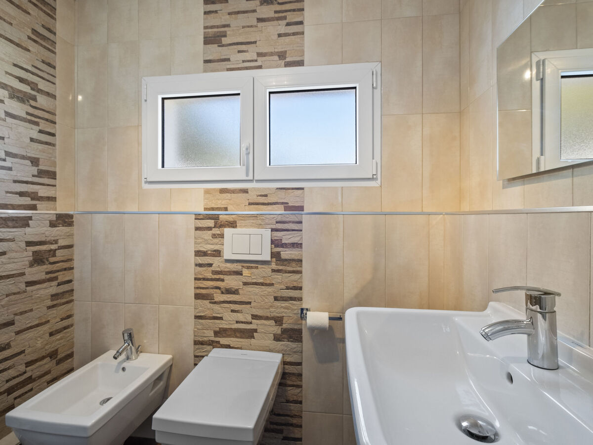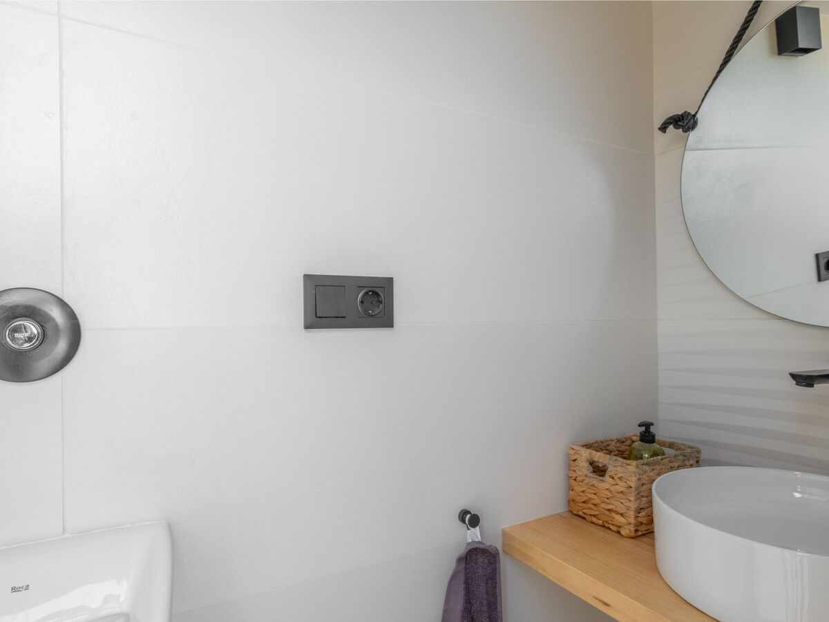 1 chambre avec 1 grand-lit (180 cm, longueur 200 cm), douche/WC, double vasque, air-conditionné et chauffage à air chaud.