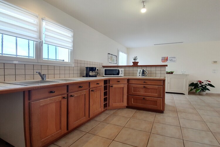 Rez-de-chaussée: (Salle de séjour(TV, table, coin salon), cuisine ouverte(foyer, bouilloire, hotte, cafetière/percolateur, four, micro ondes, lave-vaisselle , réfrigérateur), chambre(lit simple, lit bébé), chambre(lit double), chambre(lit double), salle de bains(baignoire-douche, douche, lavabo), salle de bains(douche, lavabo, WC), WC, réserve(lavabo, lave-linge ), climatisation) table, douche, terrasse, jardin(privé, clôturé), mobilier de jardin, transats, parking, parasol, piscine(privé, 7 x 4 m., ouvert de Juin jusqu'à (inclus) Oct)