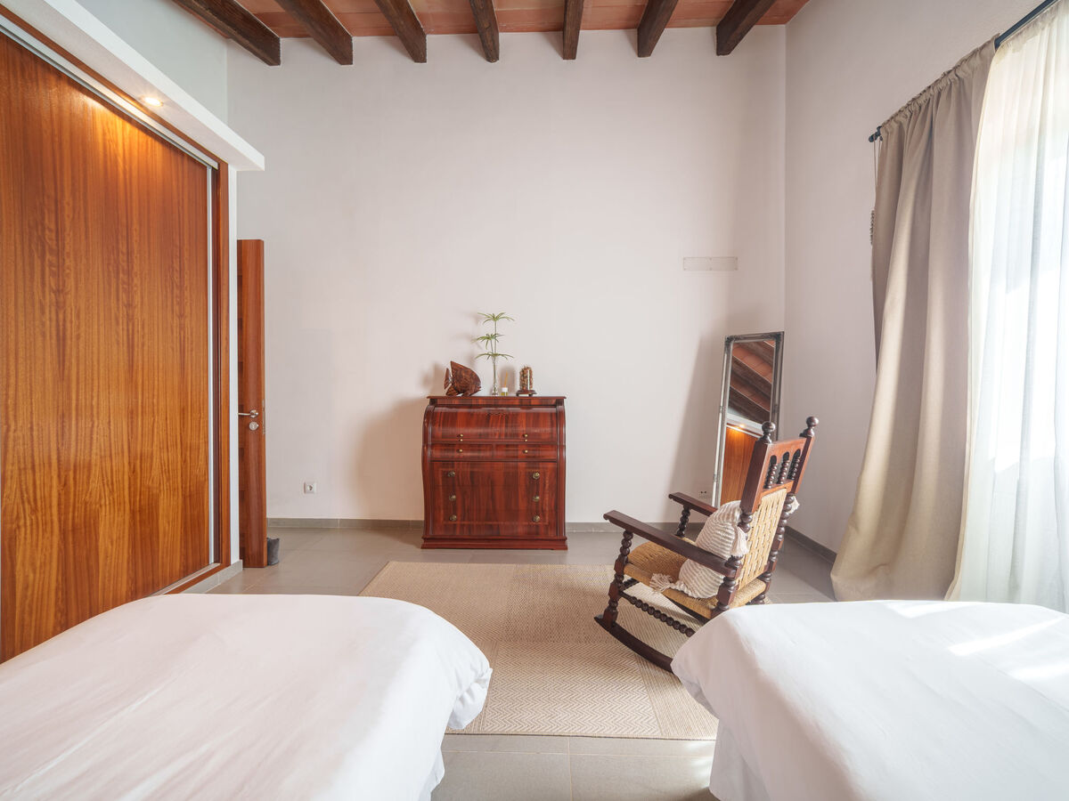 2 grandes chambres doubles avec baie vitrée, chaque chambre avec: 2 lits (90 cm, longueur 190 cm), ventilateur.