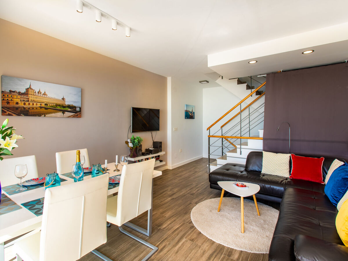Aménagement fonctionnel et confortable: séjour/salle à manger avec TV, Télévision numérique, chaînes de TV internationales et air-conditionné.
