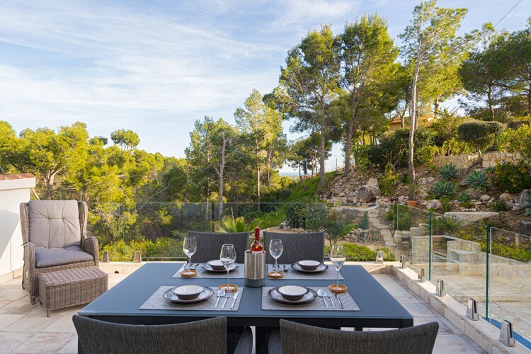 Rez-de-chaussée: (chambre(lit double, chauffage, climatisation), salle de bains(douche, WC), terrasse(privé), terrasse sur le toit) Au 1er étage: (Salle de séjour(TV, coin salon, chauffage, climatisation), cuisine(grille-pain, plaque de cuisson, cafetière/percolateur, machine à café expresso, four, micro ondes, lave-vaisselle , réfrigérateur, congélateur, Presse-agrumes), chambre(lit double, chauffage, climatisation), chambre(lit double, chauffage, climatisation), salle de bains(douche, WC)) portes-fenêtres, terrasse sur le toit, jardin(privé), mobilier de jardin(6 personnes), barbecue, piscine(privé)