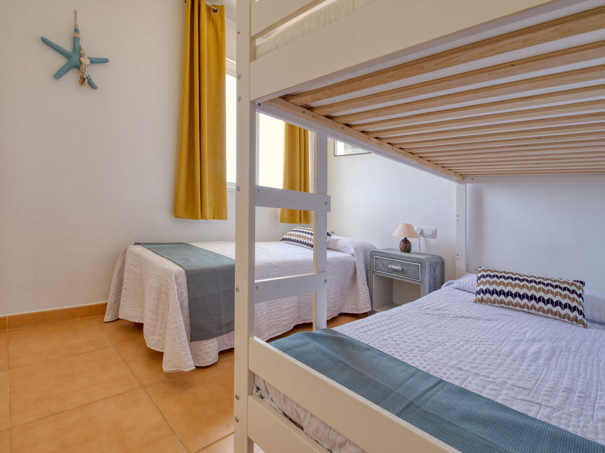 Sortie sur la terrasse avec 1 lit (90 cm, longueur 180 cm), 1 x 2 lits superposés (90 cm, longueur 180 cm).