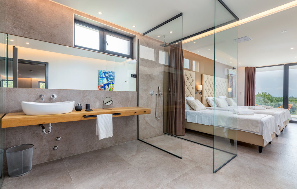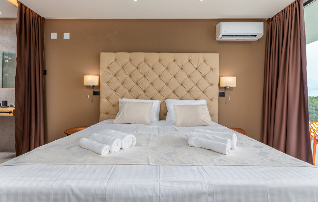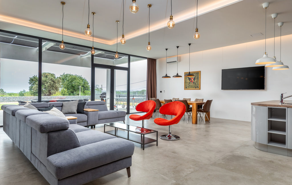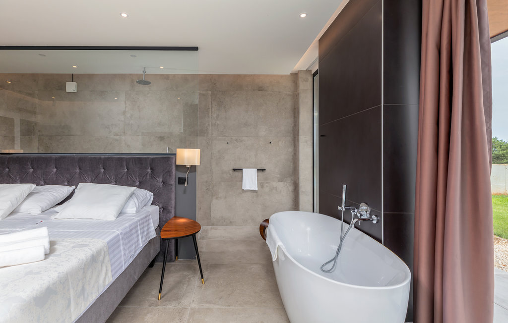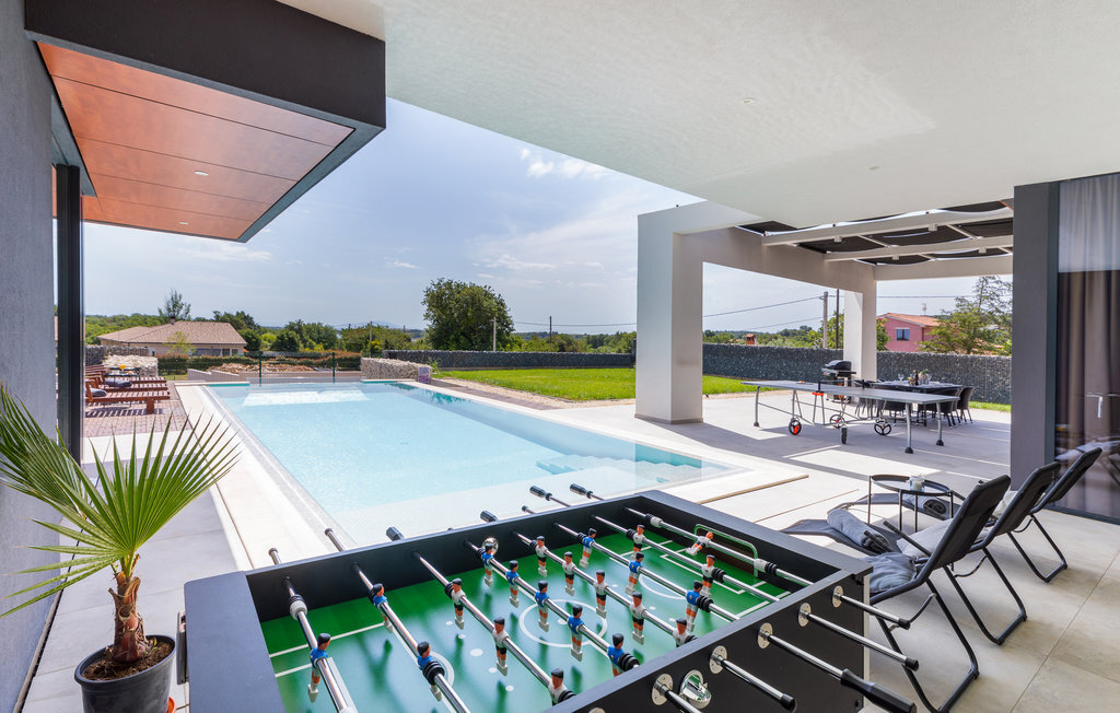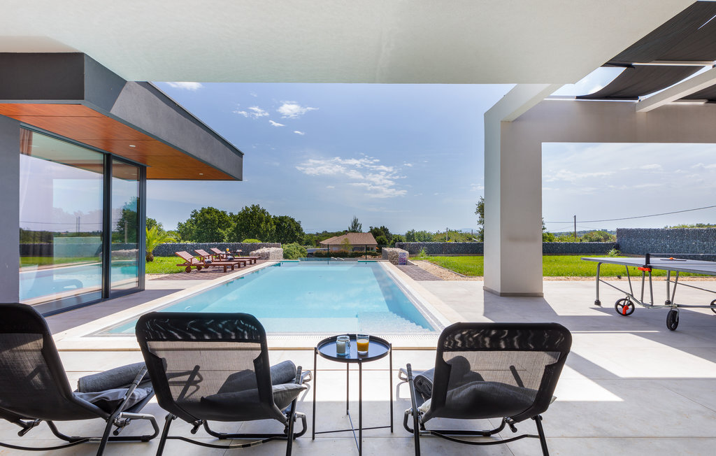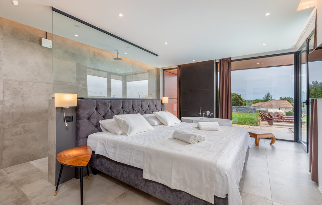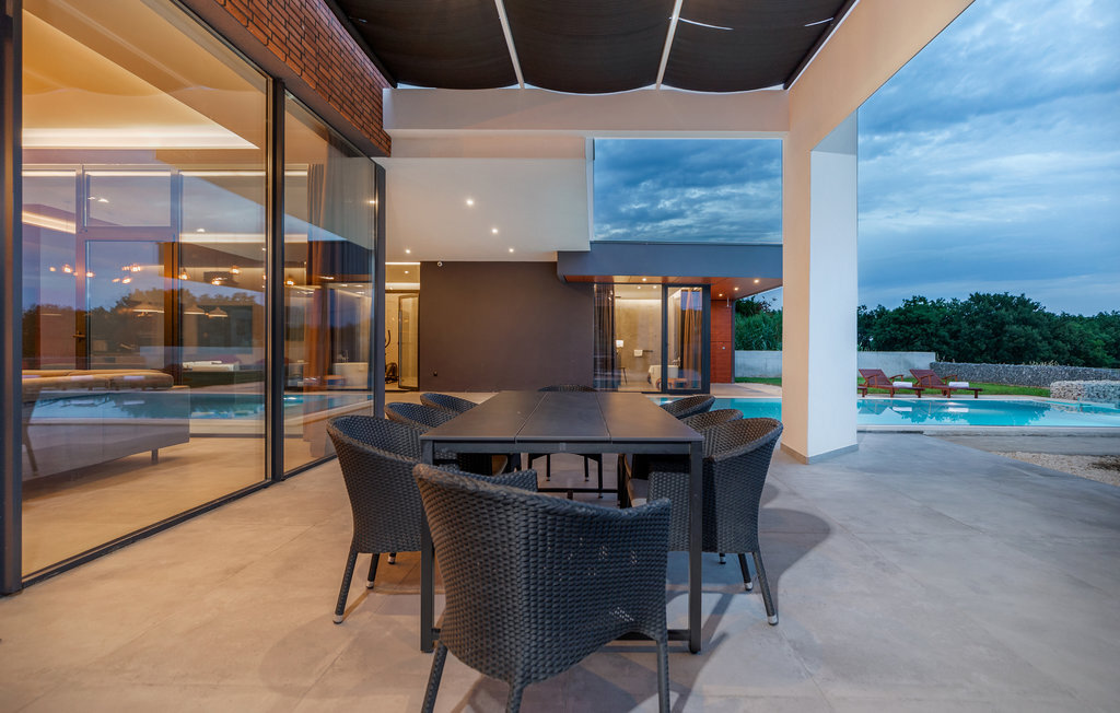 Cette maison de vacances à l'architecture impressionnante se trouve à proximité de la mer, à la pointe la plus méridionale de l'Istrie, dans le petit village de pêcheurs de Linjan. La maison, achevée en 2021, offre une belle vue sur la mer et les îles de Cres et Loinj. L'architecture de cette villa a été publiée par les plus prestigieuses revues croates de design et d'architecture. Les chambres sont aménagées de manière moderne, avec beaucoup de lumière et de surfaces vitrées. La maison est adaptée aux personnes handicapées, car tout le rez-de-chaussée ne comporte pas d'escaliers. La piscine se trouve à seulement 2 mètres du lit de la chambre du bas.