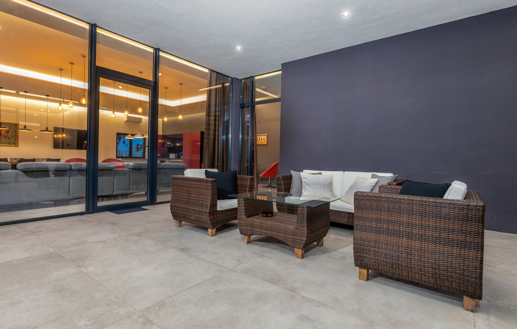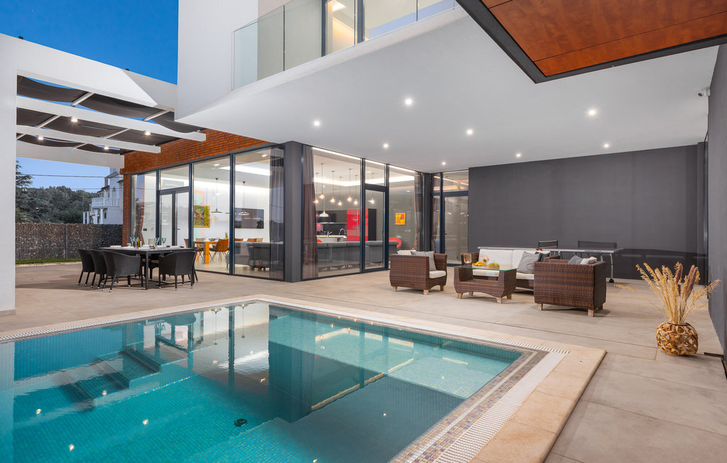 Maison de vacances luxueuse et moderne avec vue sur la mer.
