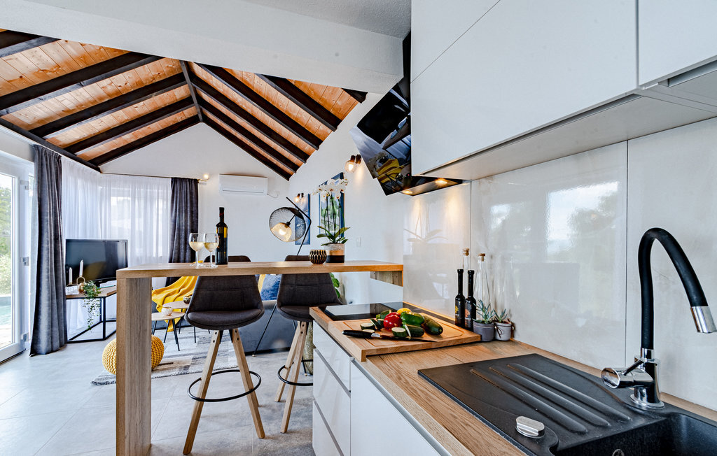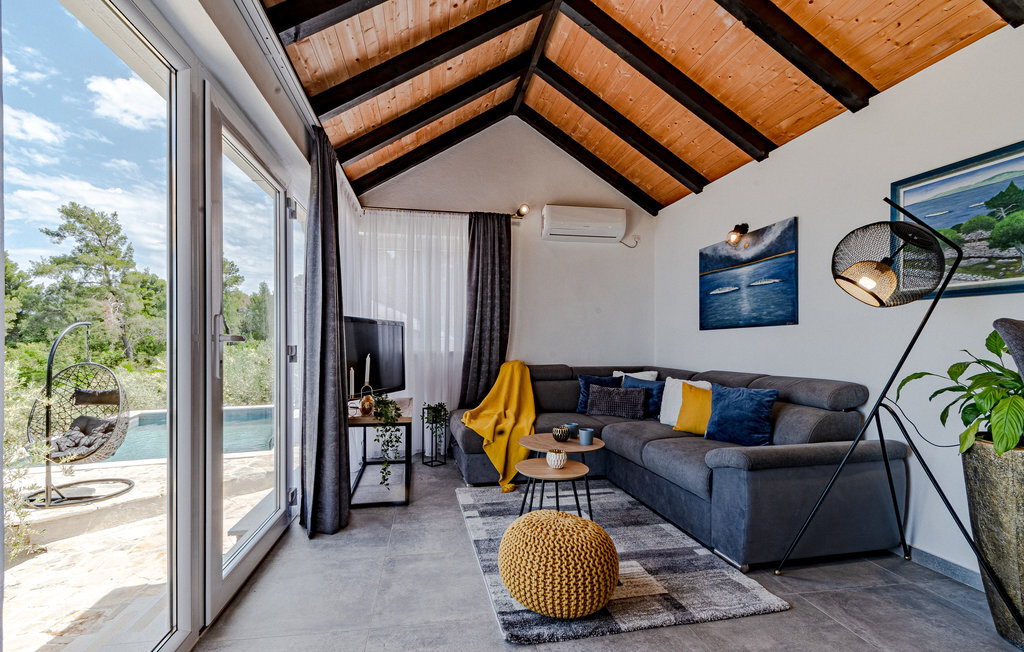 Cette charmante maison de vacances attend ses hôtes en position isolée sur une colline et offre une magnifique vue panoramique sur la mer. Les personnes en quête de calme y trouveront leur compte. Il y a une chambre à coucher avec un lit double et deux autres places de couchage dans le salon, de sorte que 4 personnes au total peuvent y passer des vacances reposantes.