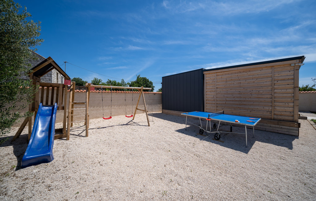 Activités de plein air : Cette location de vacances propose au moins 3 activités de plein air pour toute la famille comme par exemple une table de ping-pong, un trampoline, des boules de pétanques, un panier de basket avec son ballon etc...