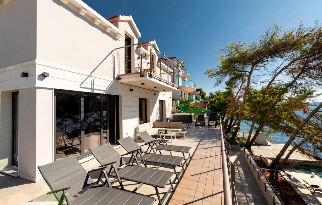 Bien-être à l'extérieur : Location de vacances disposant de chaises-longues et d'un ou plusieurs équipements tels que piscine extérieure, jacuzzi extérieur, lit à baldaquin de jardin etc...