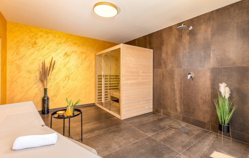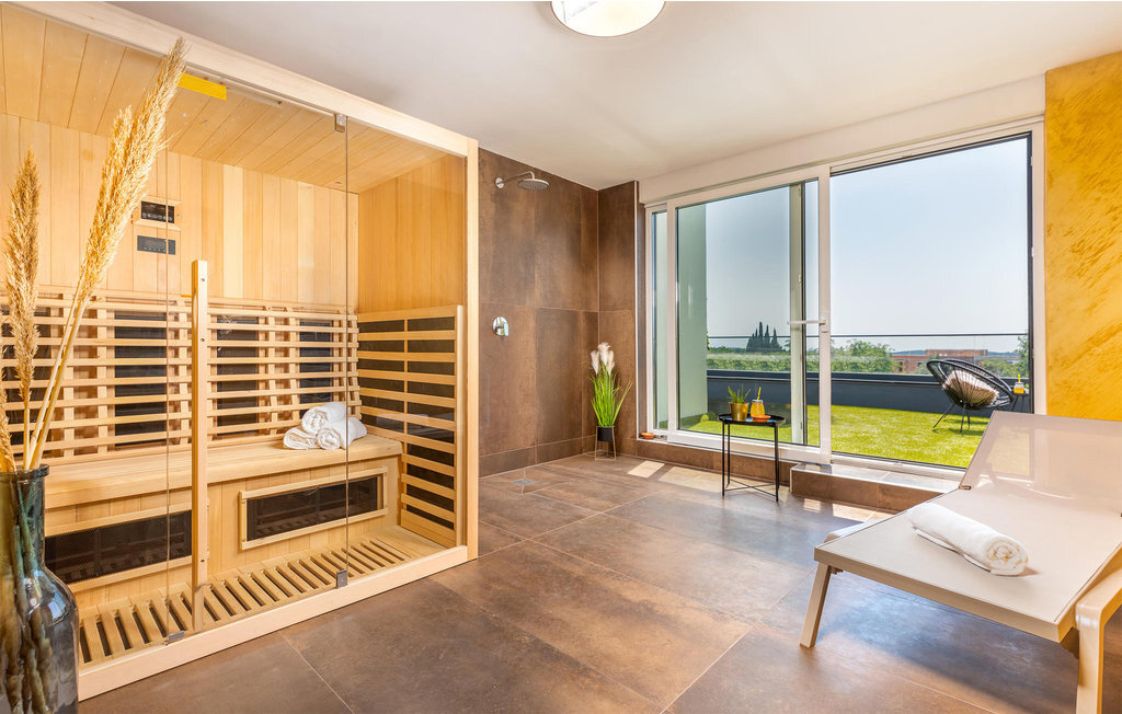 L'un des points forts est la piscine extérieure privée, où vous pourrez vous détendre sur les chaises longues et vous rafraîchir dans l'eau pendant les mois d'été. Les terrasses invitent à passer de longues soirées avec un verre de vin. Le sauna offre également un confort et une détente supplémentaires après une longue journée de vacances.