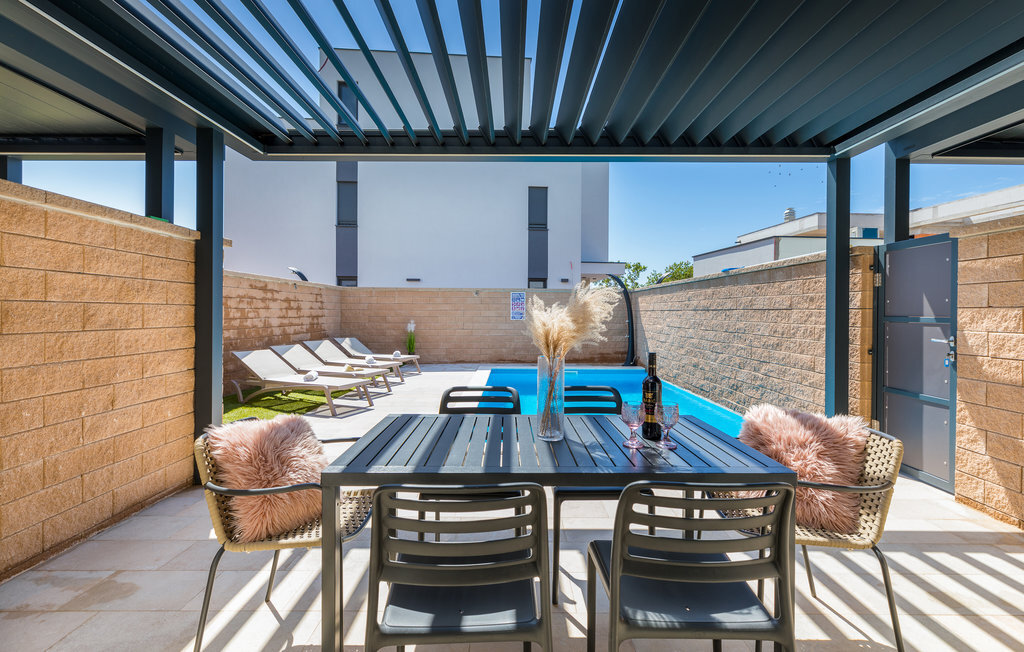 Maison jumelée moderne avec un aménagement élégant et une piscine privée.