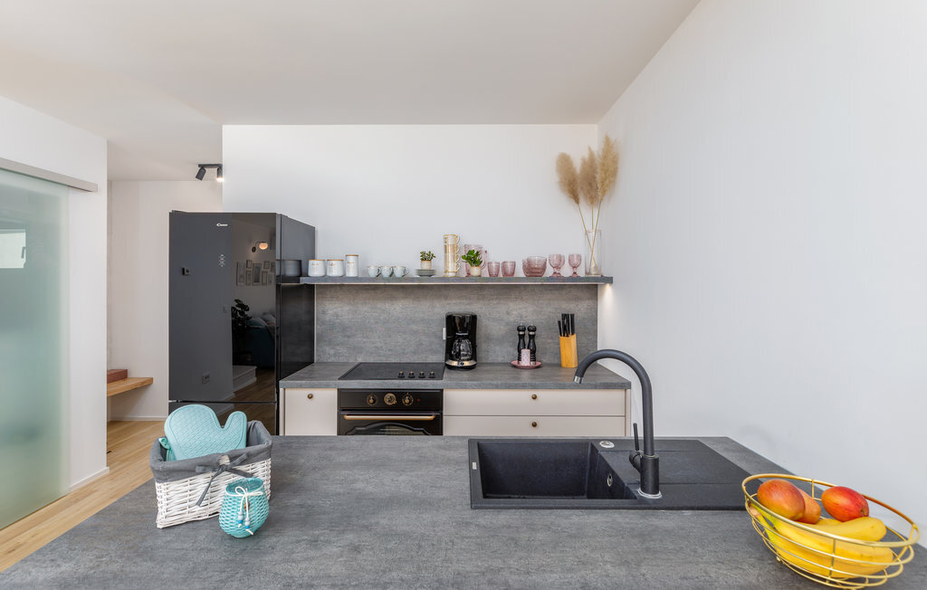 La maison s'étend sur deux étages et est aménagée de manière moderne et de haute qualité. Au premier étage se trouvent les 2 chambres à coucher et les salles de bains et d'ici vous avez une vue sur la mer. Le point central de la maison est la cuisine ouverte sur la salle à manger et le salon, où vous pourrez préparer ensemble de délicieux repas et passer des soirées conviviales.