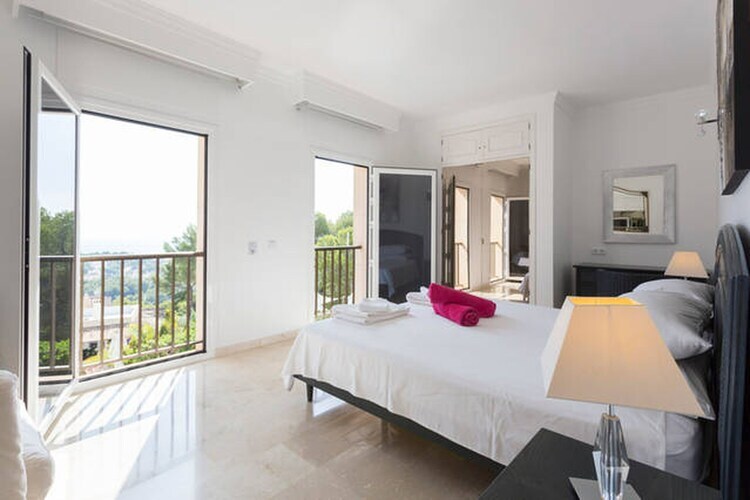 Située dans un quartier prestigieux au sommet d'une colline au-dessus de Marina Puerto Portals, vous trouverez cette majestueuse villa avec piscine privée, sauna et jacuzzi. La villa surplombe la baie de Palma et un parcours de golf. C'est le meilleur endroit pour que votre famille se détende et se ressource. Avec de nombreuses plages de mer à distance de marche, ces vacances peuvent être vos meilleurs moments qui resteront gravés à jamais.