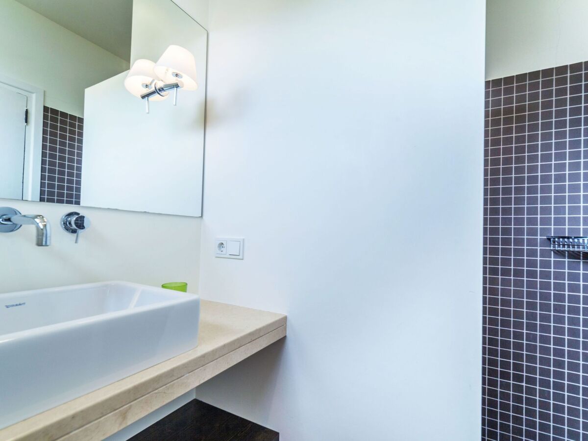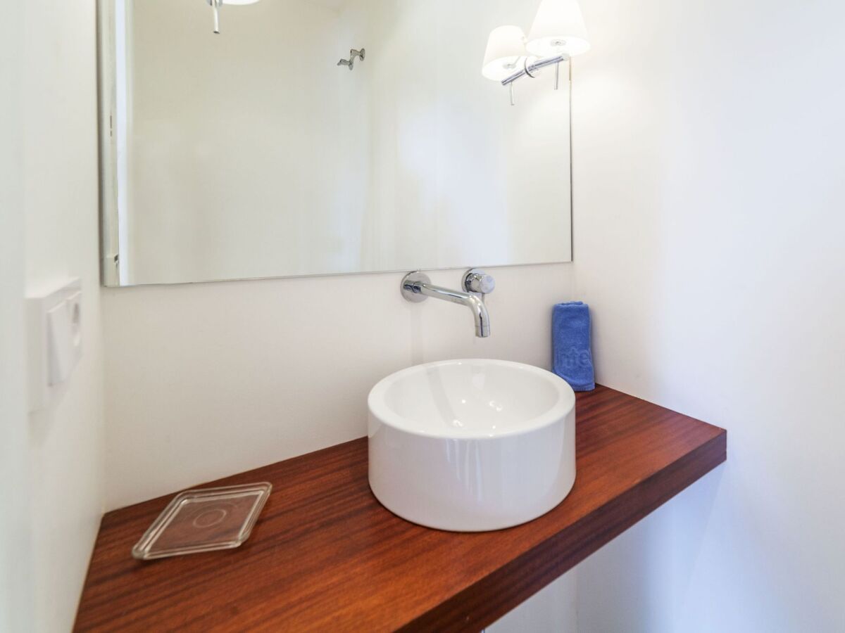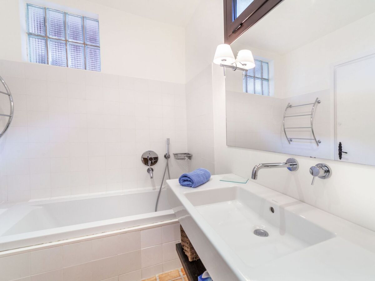 1 chambre avec 2 lits (90 cm, longueur 190 cm), bain/WC.