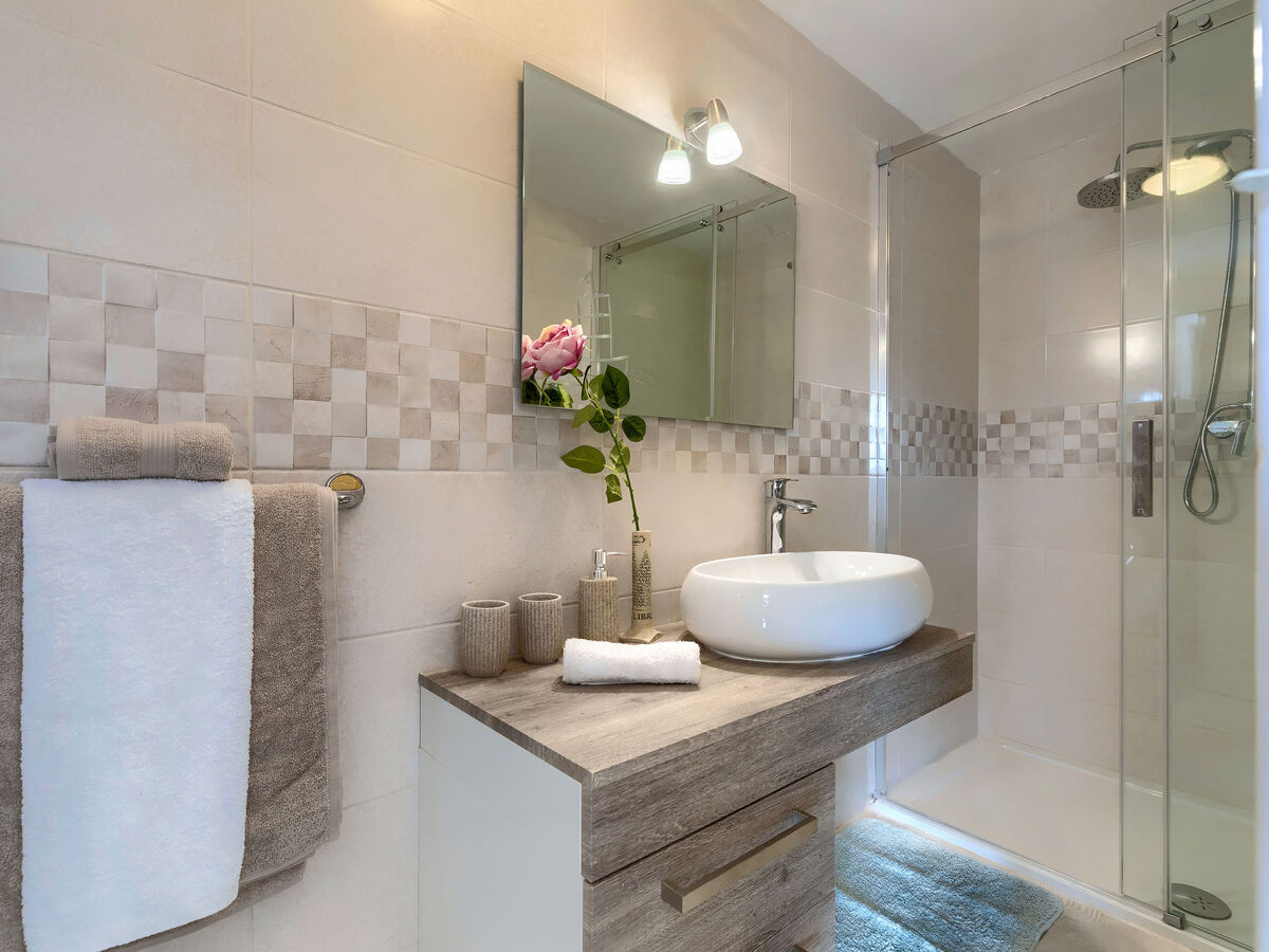 Douche extérieure, terrasse (50 m2), meubles de jardin, barbecue.