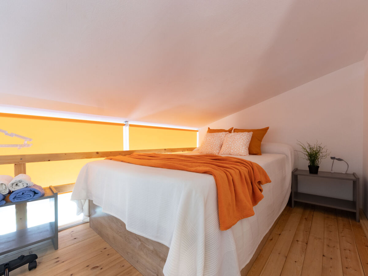 À l'étage supérieur: 1 chambre double avec 1 grand-lit (135 cm, longueur 190 cm).