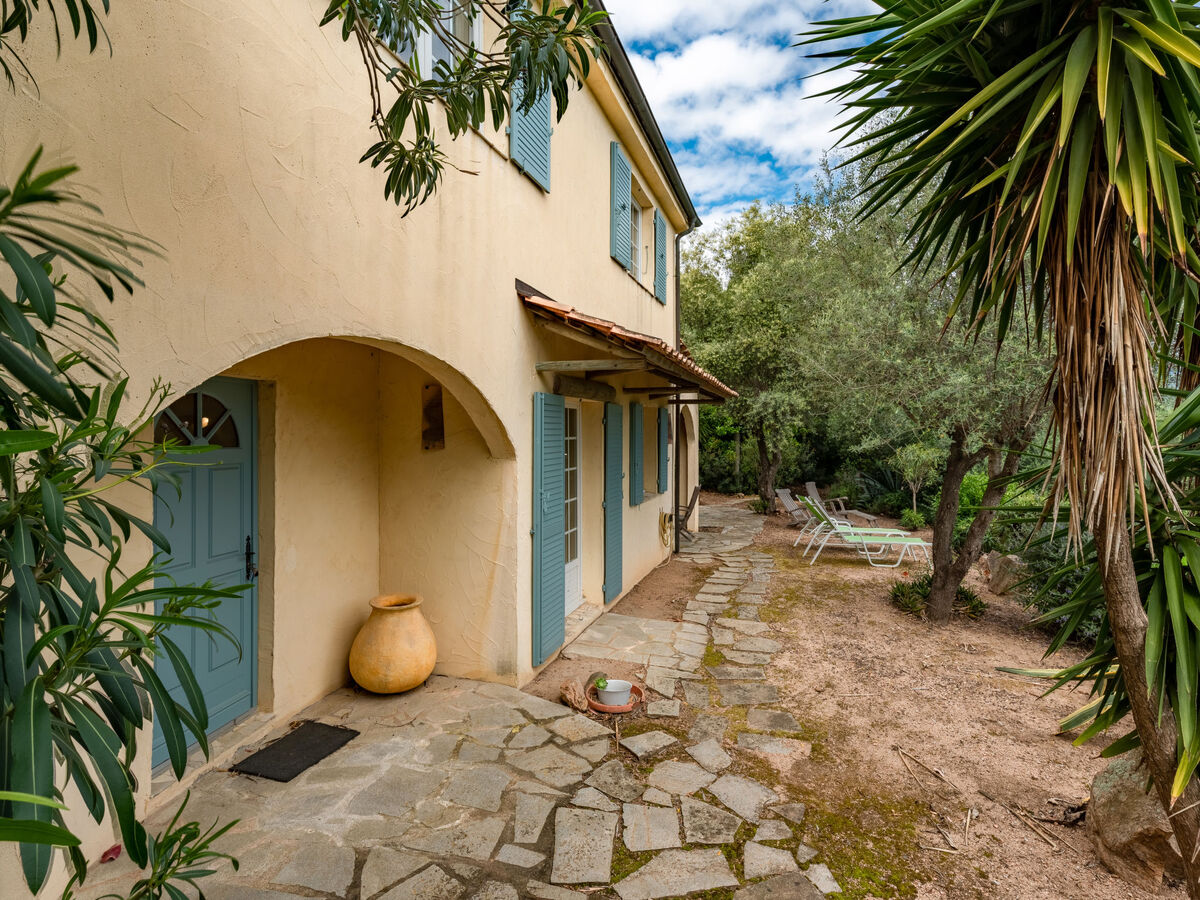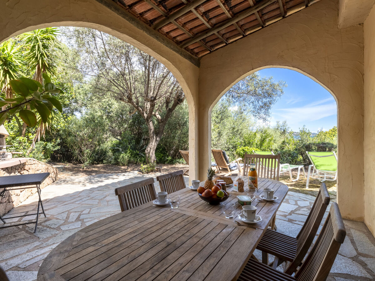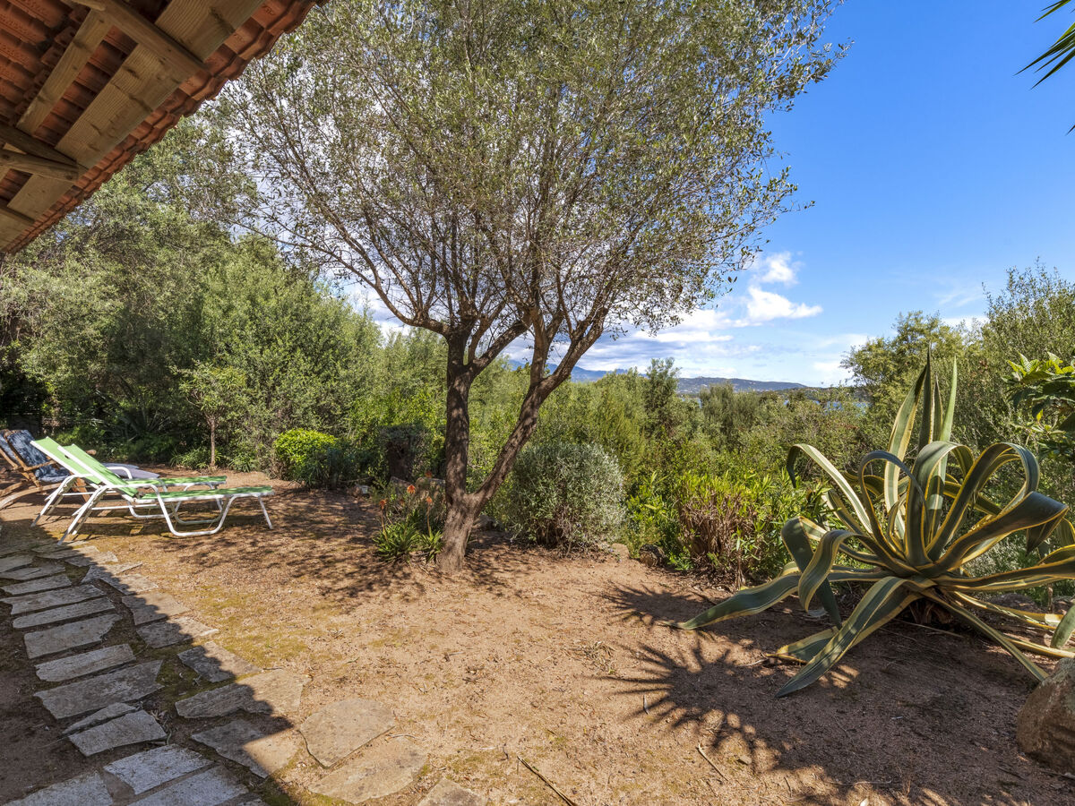 En bordure de la localité, à 8 km du centre de Porto Vecchio, à 100 m de la mer, à 400 m de la plage, accès direct à la plage, dans la verdure.