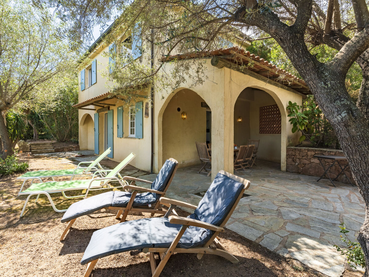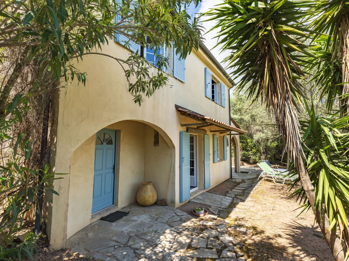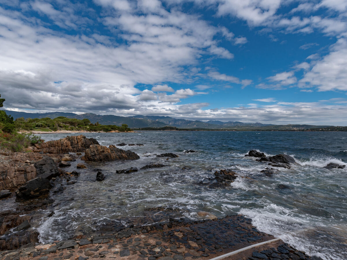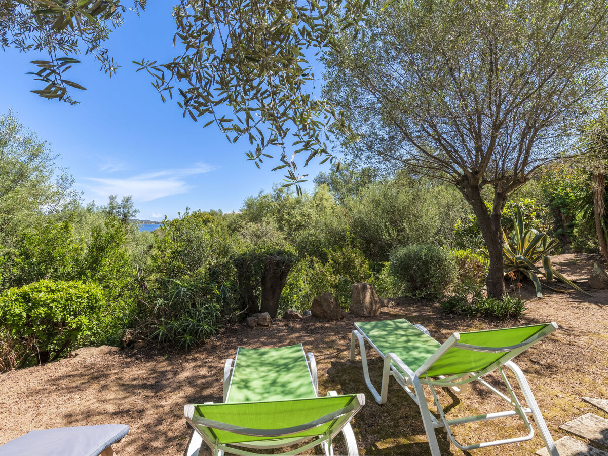 En bordure de la localité, à 8 km du centre de Porto Vecchio, à 100 m de la mer, à 400 m de la plage, accès direct à la plage, dans la verdure.