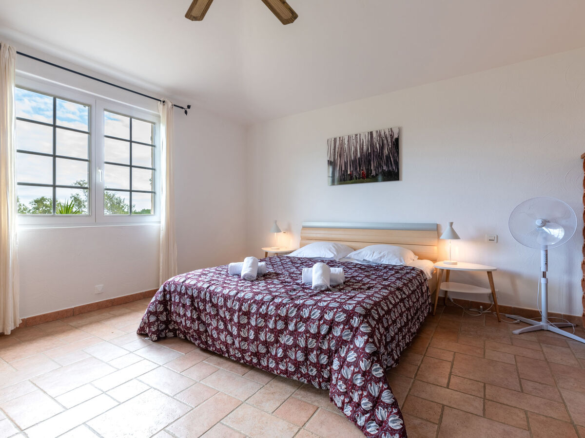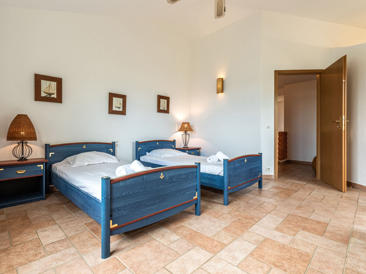 1 chambre avec 2 lits (90 cm, longueur 190 cm), 1 divan-lit (120 cm, longueur 190 cm), douche et ventilateur.
