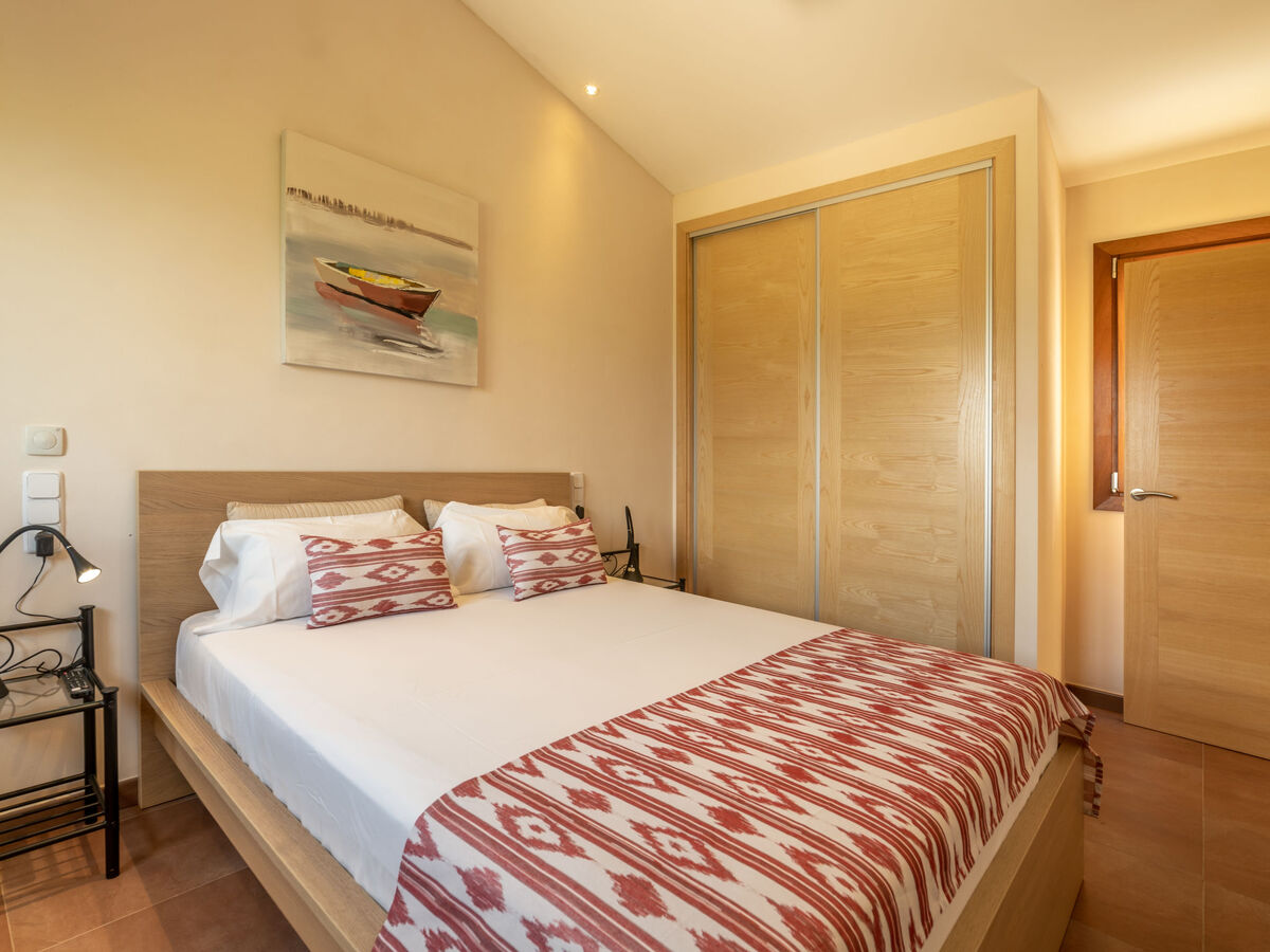 Spacieux, aménagement confortable et plaisant: 1 chambre double avec 1 grand-lit (160 cm, longueur 200 cm), TV (satellite), écran plat et ventilateur.