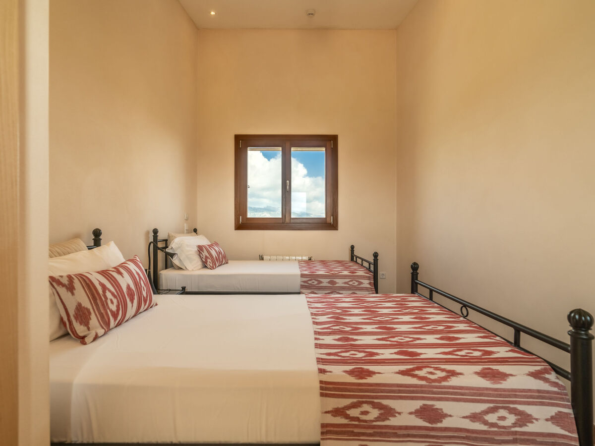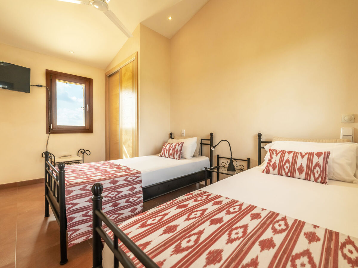1 grande chambre double avec 2 lits (90 cm, longueur 190 cm), TV (satellite), écran plat et ventilateur.