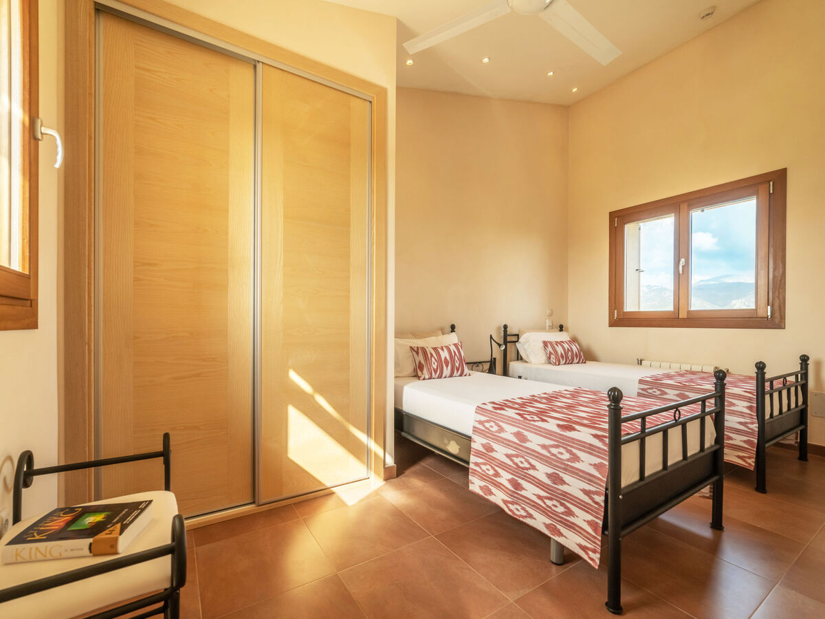 À l'étage supérieur: 1 grande chambre double avec 2 lits (90 cm, longueur 190 cm), TV (satellite), écran plat et ventilateur.