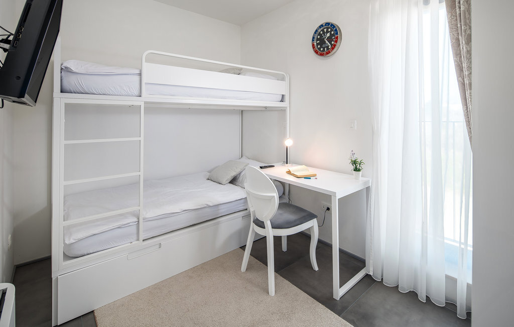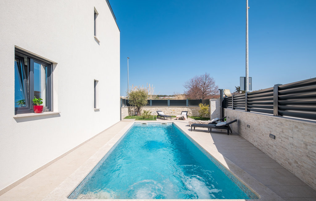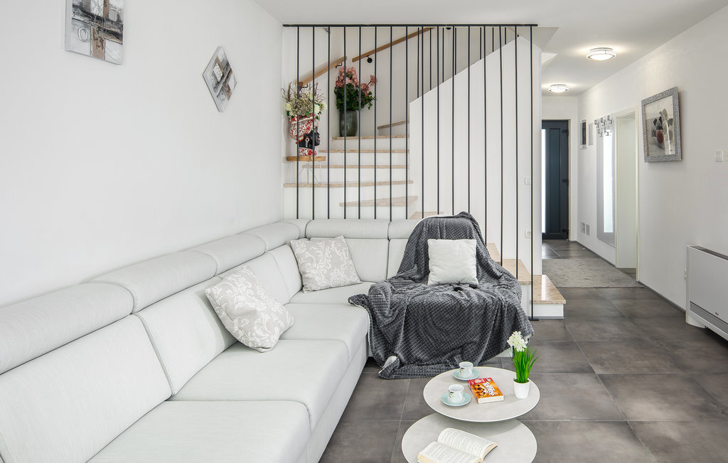 Cette villa de vacances se trouve à quelques minutes à pied du centre-ville et des premières plages. Moderne et confortable, elle est l'endroit idéal pour profiter pleinement de l'atmosphère estivale ici. Avec 4 chambres et 3 salles de bains, la maison peut accueillir jusqu'à 8 personnes. Elle est entièrement climatisée, ce qui vous permet de profiter d'une température ambiante agréable même pendant les chaudes journées d'été.
