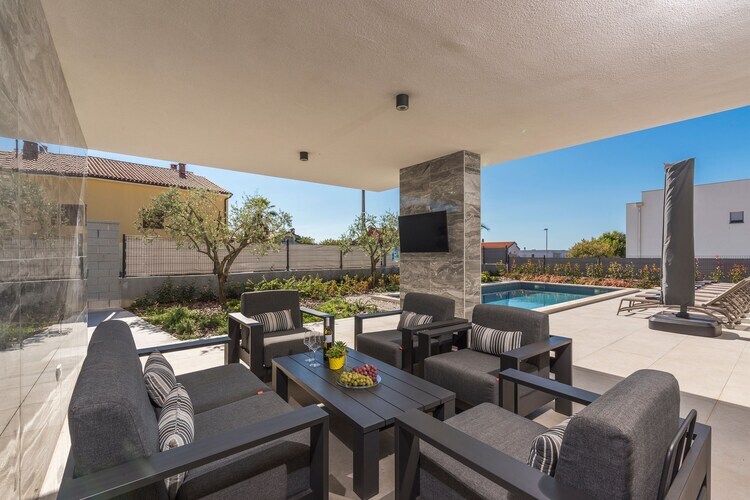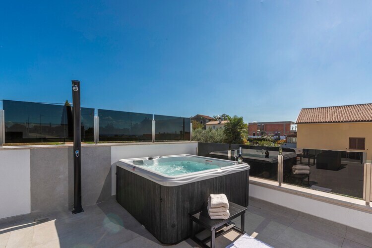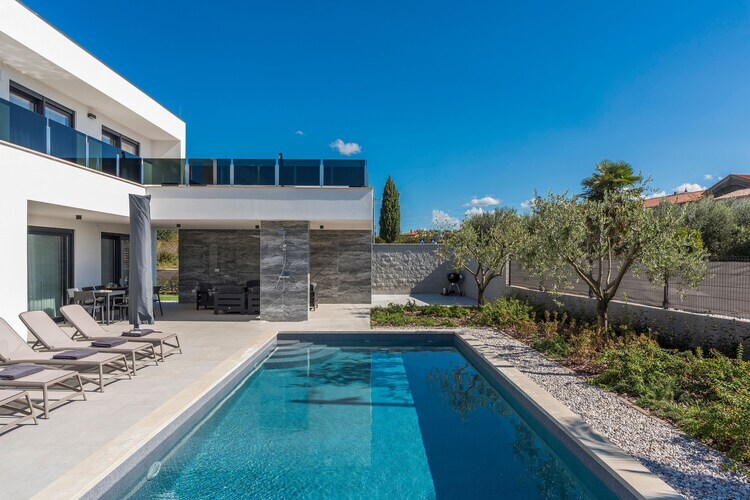 Cette villa moderne est située à seulement 2 km de la belle ville istrienne de Novigrad. Notre désir est pour vous de trouver beaucoup plus en eux que de l'hébergement de luxe. La piscine vous invite et votre groupe entier à nager ou simplement de se lâcher. Profitez d'un après-midi de bien-être dans le bain à remous sur la terrasse en plein air, puis glissez-vous à de beaux rêves dans nos lits spacieux. Reposez vos yeux sur la mer bleue du confort de votre villa.