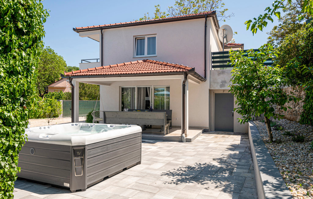 Bien-être à l'extérieur : Location de vacances disposant de chaises-longues et d'un ou plusieurs équipements tels que piscine extérieure, jacuzzi extérieur, lit à baldaquin de jardin etc...