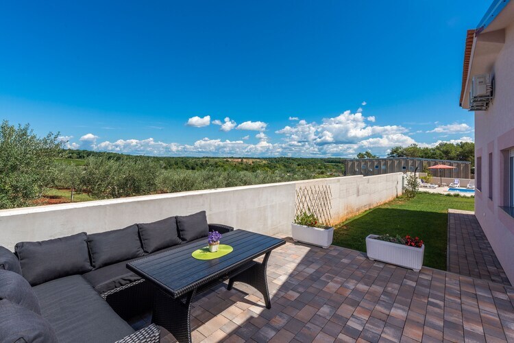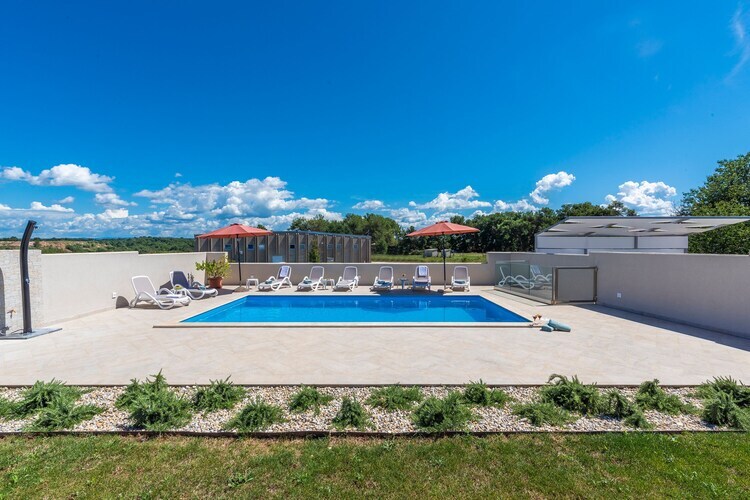 La villa moderne à Novigrad propose un hébergement climatisé avec une piscine privée, une vue sur la piscine et une terrasse.