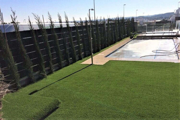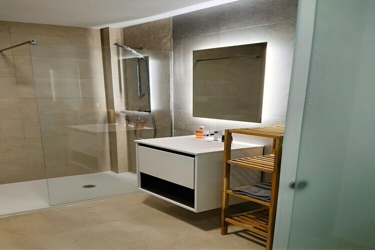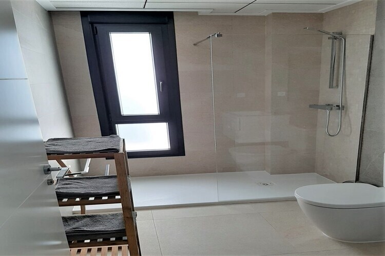 Rez-de-chaussée: (Entrée, cuisine ouverte(foyer(4 foyers, électrique), cafetière/percolateur, four, micro ondes, lave-vaisselle ), salle à manger-salon(45 m2)(TV(écran plat), coin salon), chambre(9 m2)(lit simple(90 x 200 cm), lit simple(90 x 200 cm)), chambre(9 m2)(lit double), chambre avec salle de bains(16 m2)(lit double(135 x 200 cm), douche, lavabo, WC), salle de bains(douche, lavabo, WC)) table, solarium, lave-linge , portes-fenêtres, chauffage, climatisation, terrasse(privé, 90 m2), terrasse(privé, 65 m2), jardin(privé, 30 m2), mobilier de jardin, barbecue, parking, piscine(privé, extérieur, 8 x 4 m., ouvert de Juin jusqu'à (inclus) Sept), hamac, table à repasser, fer à repasser