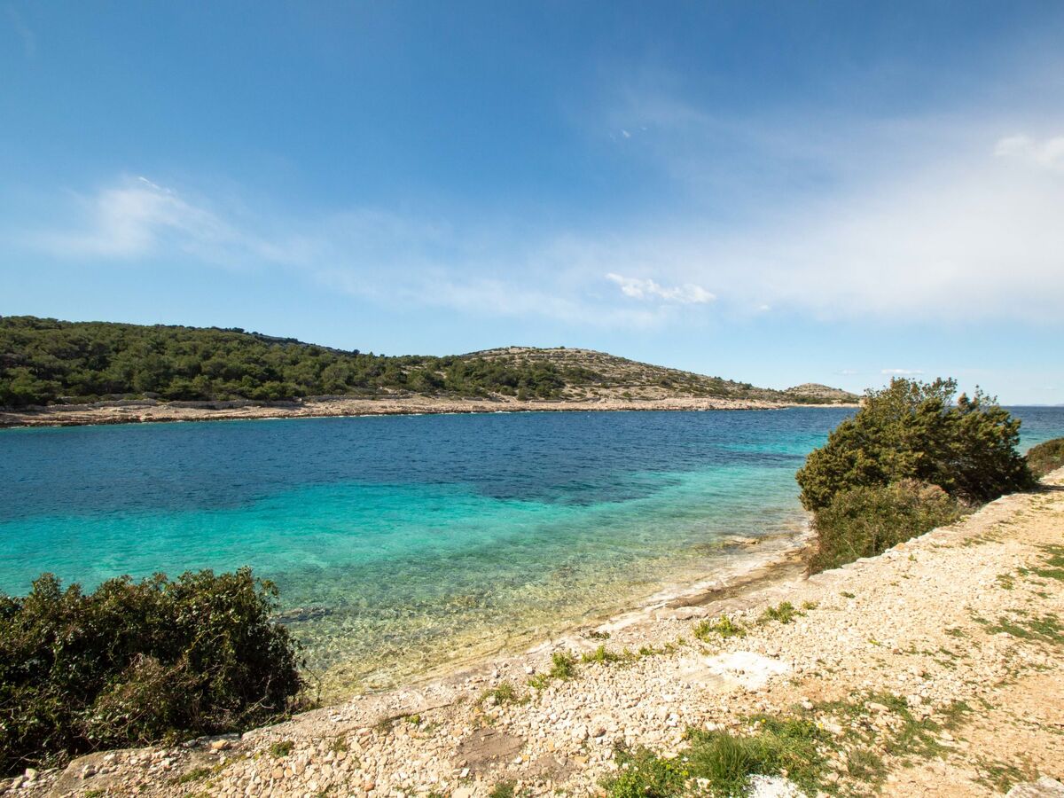 À 3 km du centre de Žirje, situation tranquille, ensoleillée, juste au bord de la mer, juste au bord de la plage.