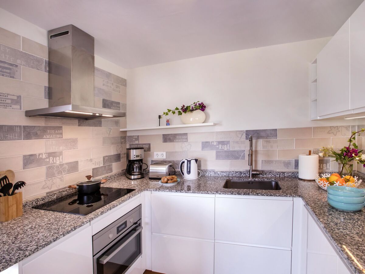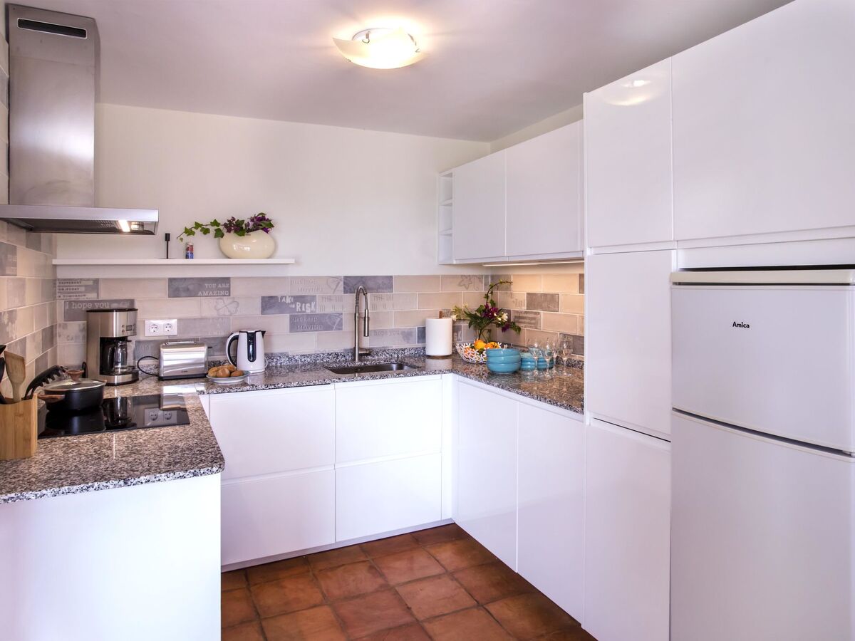 Cuisine ouverte (four, lave-vaisselle, 3 plaques vitrocéramiques, grille-pain, bouilloire électrique, micro-ondes, congélateur, cafetière électrique).