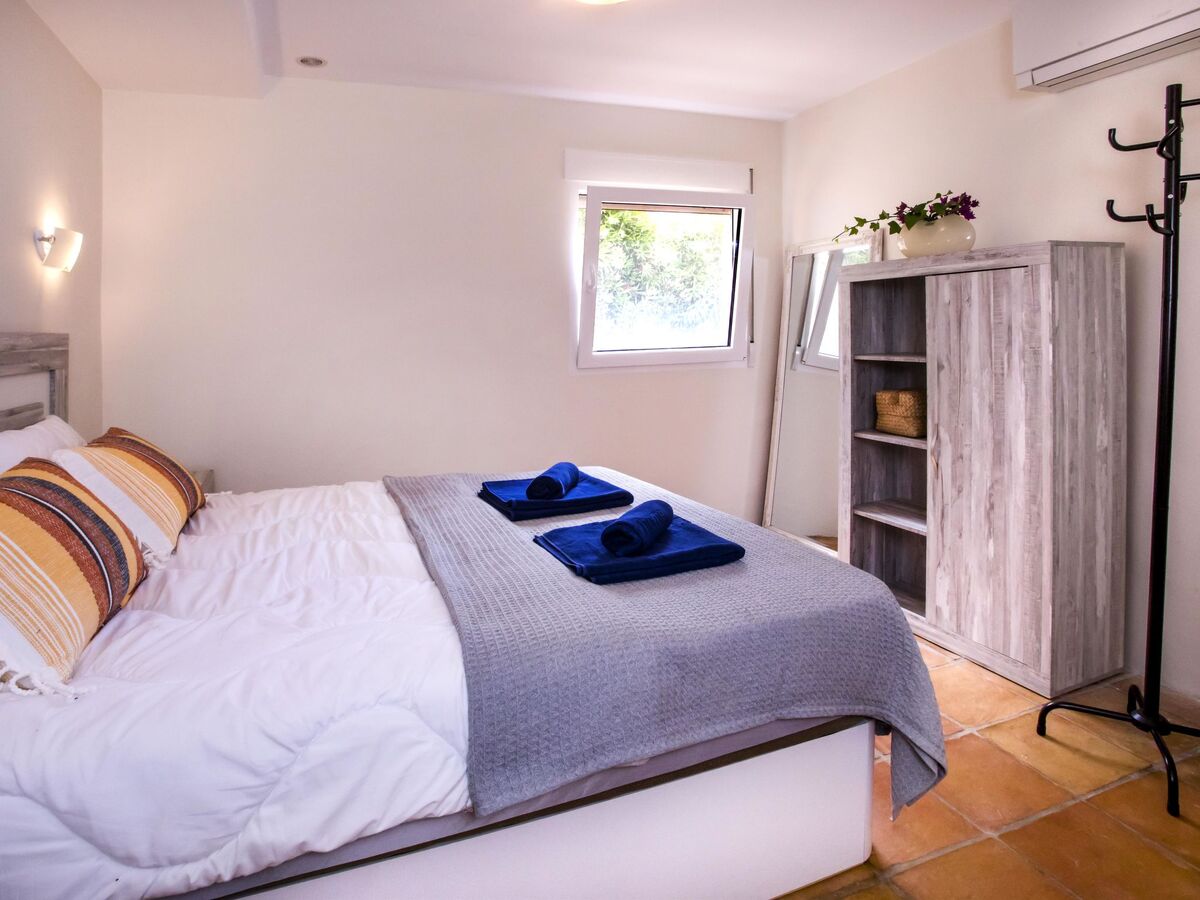 1 chambre avec 1 grand-lit (160 cm, longueur 200 cm), douche/WC, air-conditionné et chauffage à air chaud.