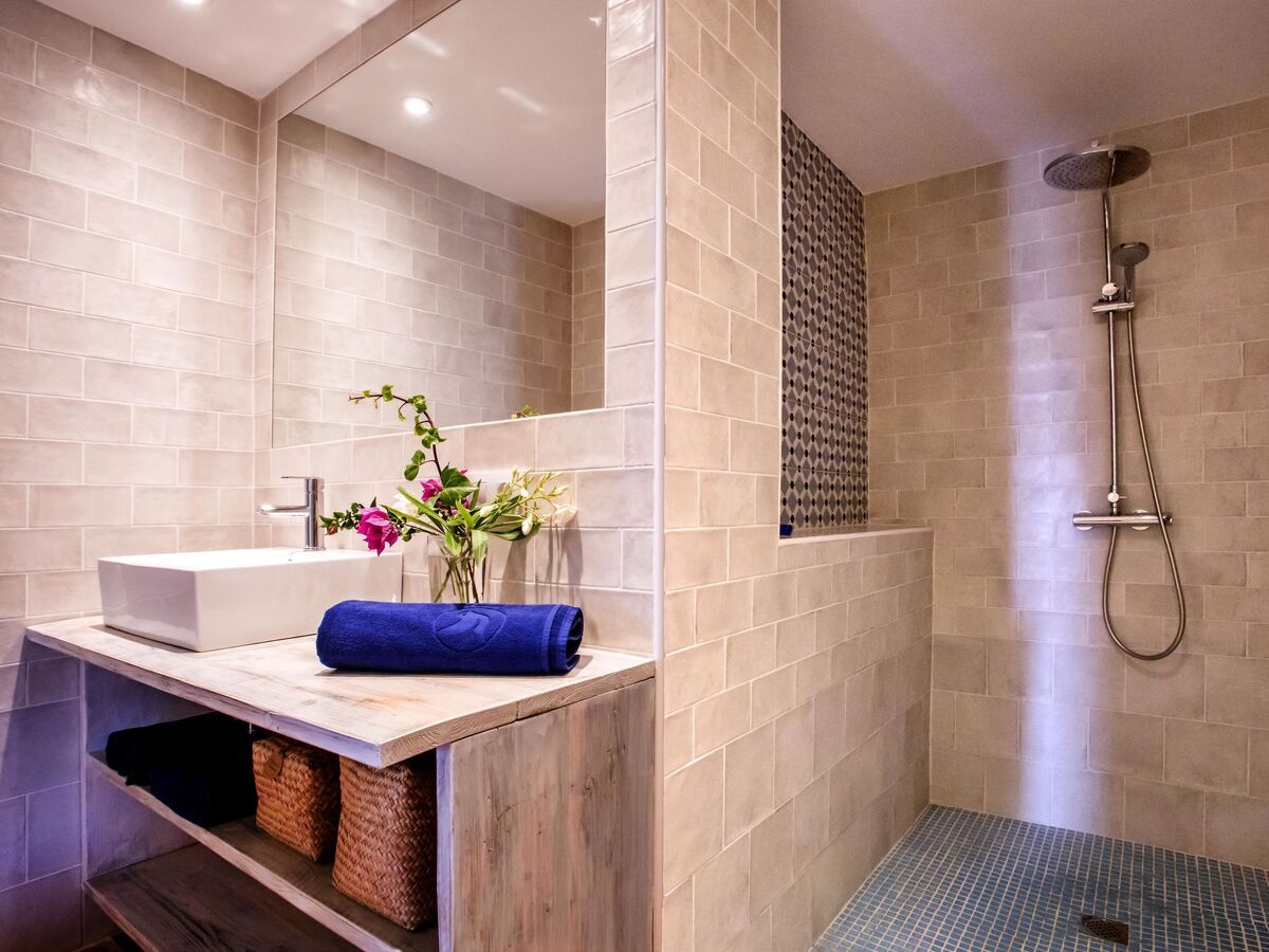 Douche extérieure, meubles de jardin, barbecue, place de parking sur le terrain.