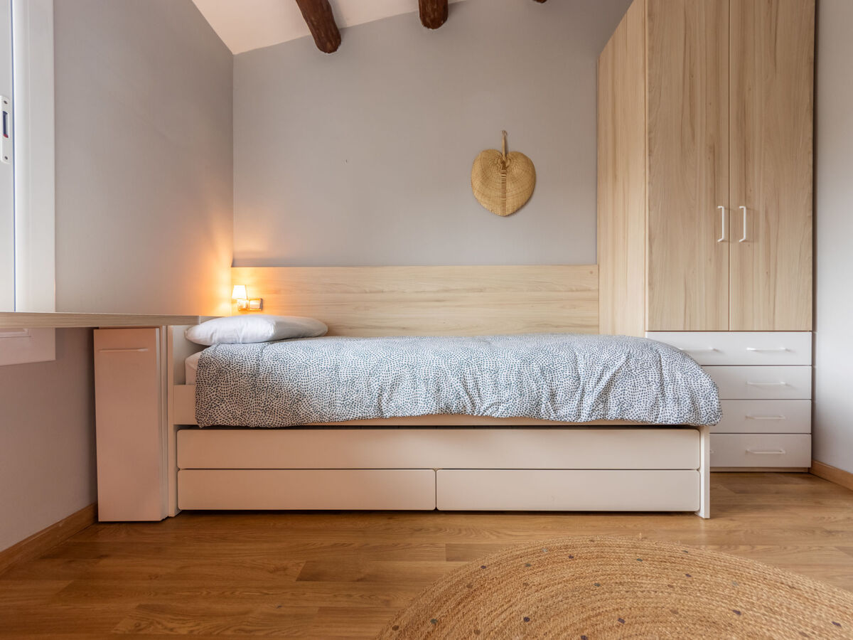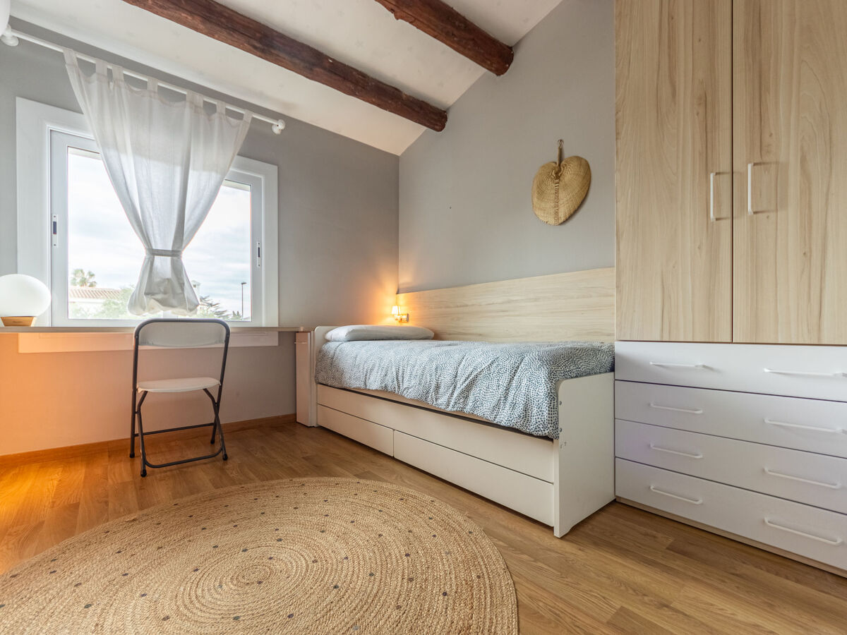 1 chambre avec 1 lit gigogne (2 x 90 cm, longueur 190 cm), radiateur électrique et air-conditionné.