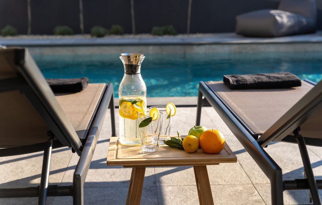 Profitez de vos vacances sur les chaises longues au bord de la piscine, rafraîchissez-vous dans la piscine et laissez le quotidien derrière vous. Grâce aux cinq terrasses couvertes, vous trouverez toujours un endroit pour lire ou prendre un bain de soleil.