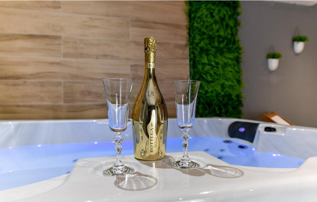 Bien-être à l'extérieur : Location de vacances disposant de chaises-longues et d'un ou plusieurs équipements tels que piscine extérieure, jacuzzi extérieur, lit à baldaquin de jardin etc...