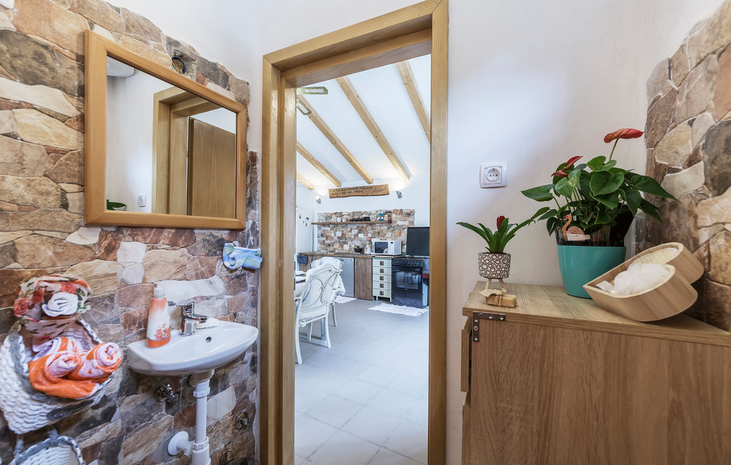 La maison est entourée de nature et se trouve dans un endroit calme, à l'écart du bruit et du stress de la ville. A l'intérieur de la maison, un aménagement simple vous attend et la cuisine-salon et une salle de bain sont accessibles par une entrée séparée.