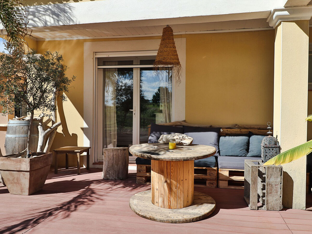 Sortie sur le jardin, sur la terrasse, sur la piscine.