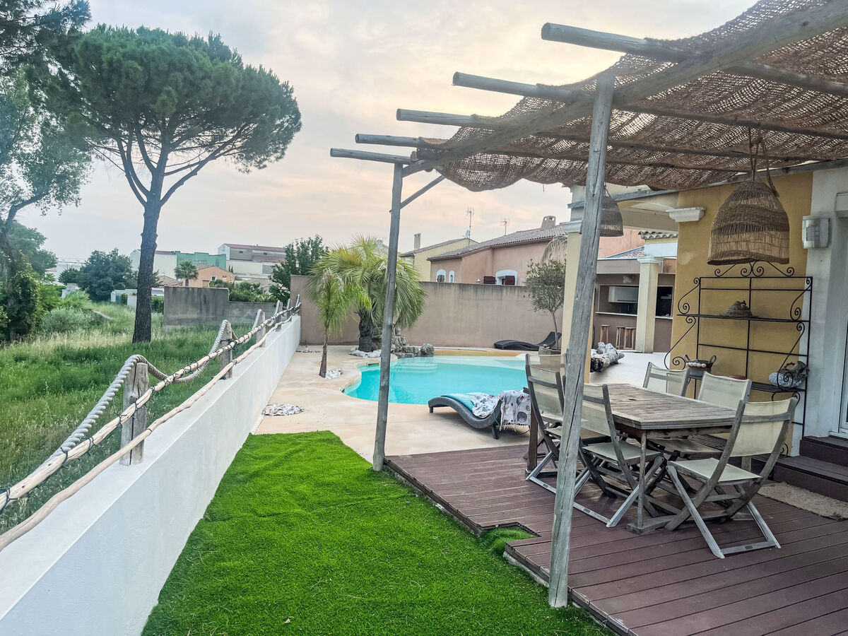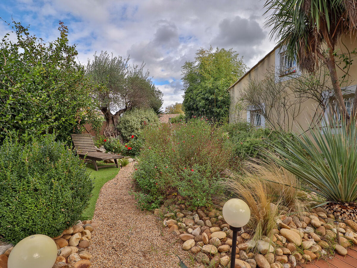 Pool house avec réfrigérateur, douche et WC, terrasse, meubles de jardin, espace barbecue, entretien de la piscine par le propriétaire/jardinier.