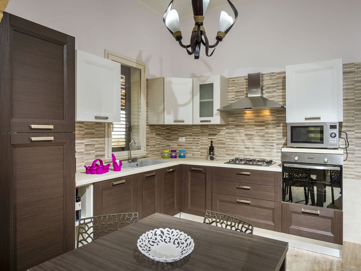 Cuisine (4 plaques de cuisson, grille-pain, bouilloire électrique, micro-ondes, cafetière électrique) avec air-conditionné.