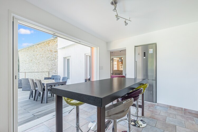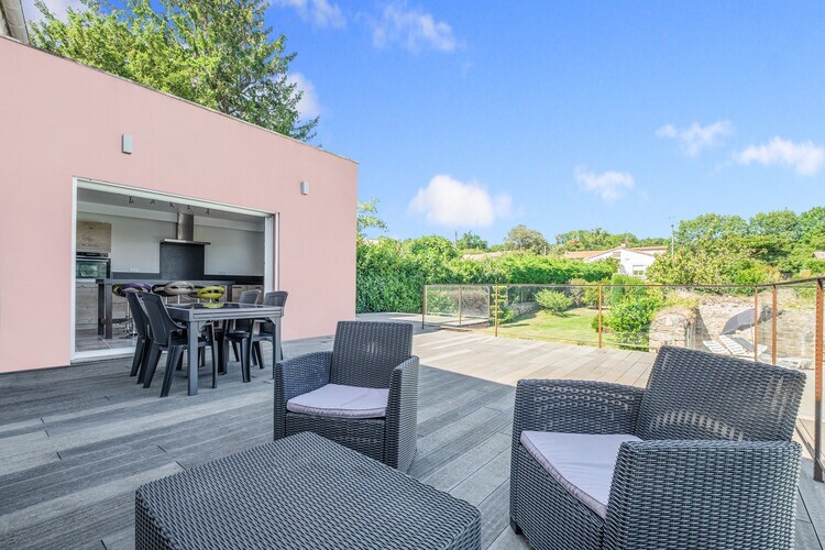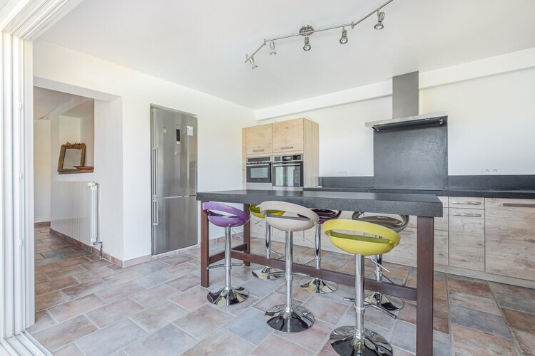 Rez-de-chaussée: (garage) Au 1er étage: (cuisine(grille-pain, plaque de cuisson(induction), hotte, machine à café expresso, four, micro ondes, lave-vaisselle , combinaison réfrigérateur/congélateur, lave-linge , fer à repasser), salle à manger-salon(40 m2)(TV(écran plat, satellite), table, Lecteur DVD), chambre avec salle de bains(25 m2)(lit double(180 x 200 cm), TV(smart TV), douche(douche à l'italienne), lavabo, lavabo), WC) Au 2ème étage: (chambre(lit double(140 x 200 cm)), chambre(lit simple(90 x 190 cm), lit double(140 x 190 cm)), salle de bains(baignoire, douche, lavabo), WC) table(8 personnes), terrasse, transats, barbecue(électrique), piscine(privé, extérieur, 14 x 4 m.)