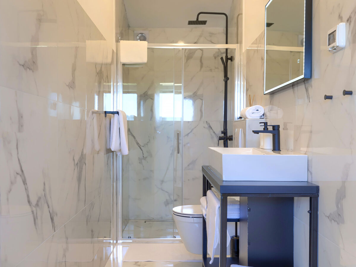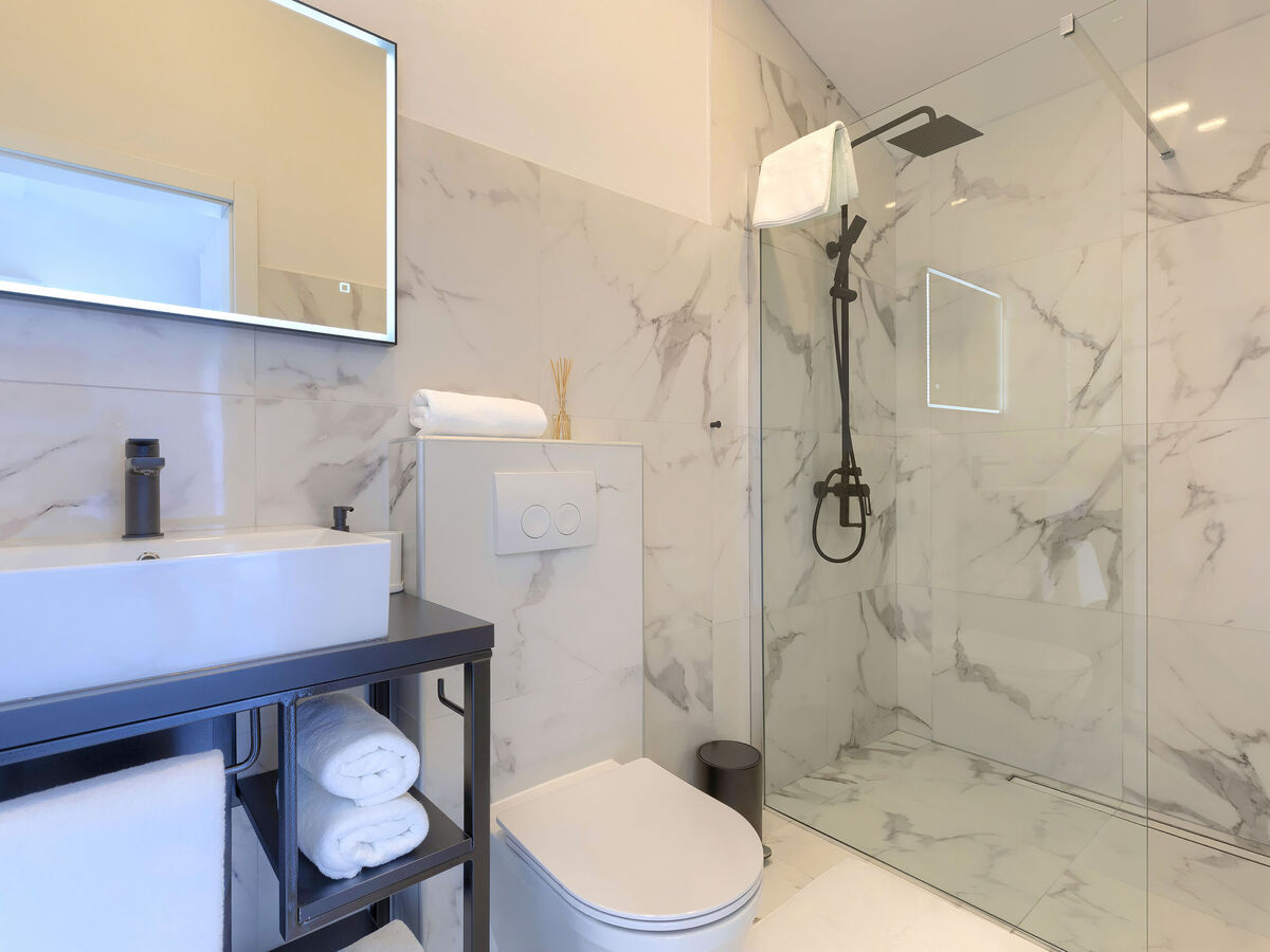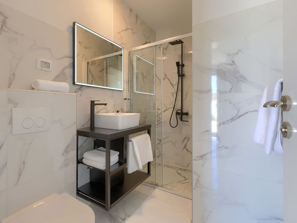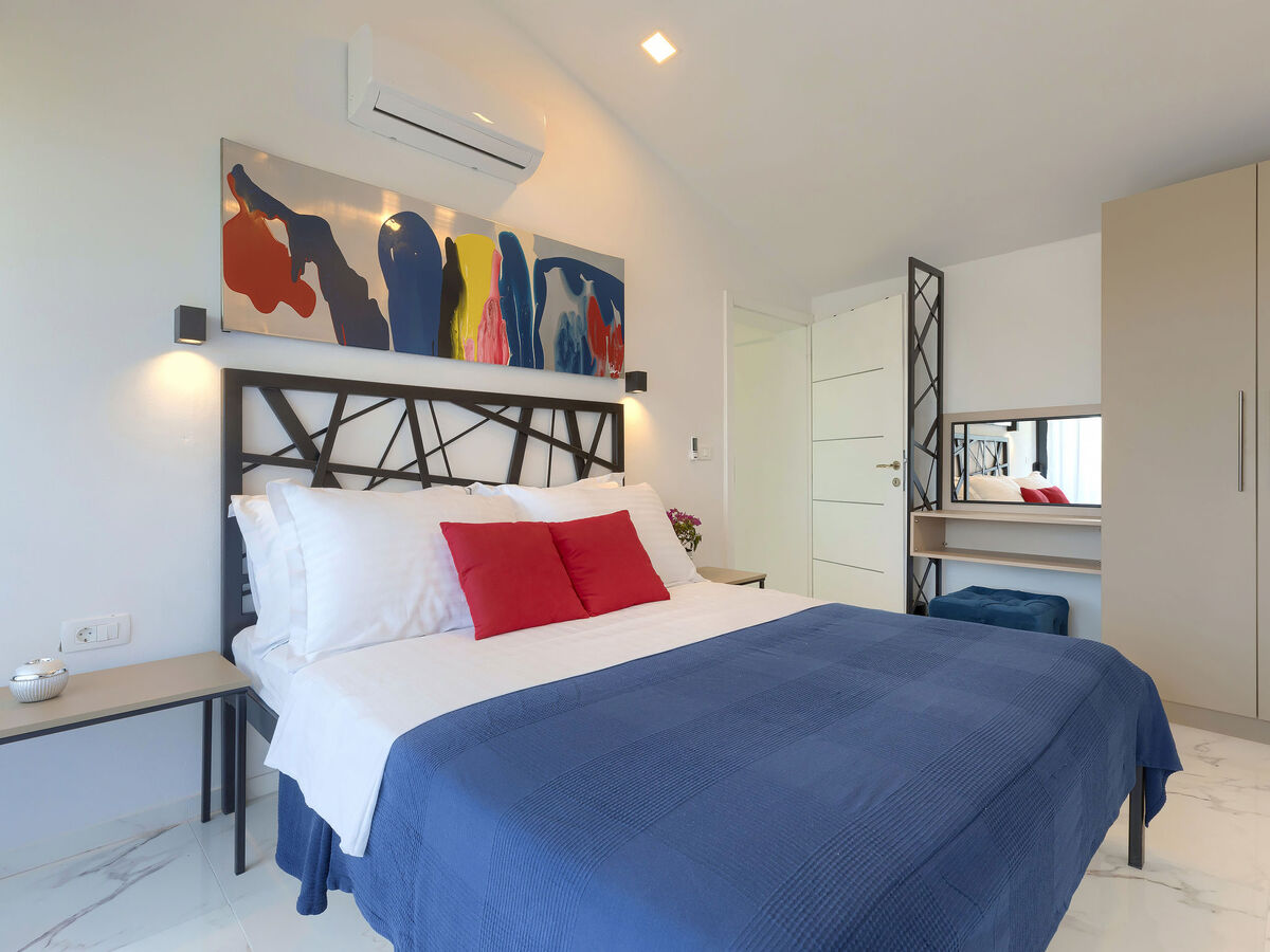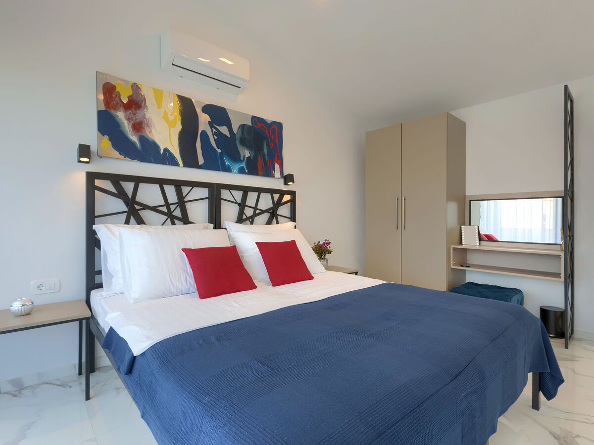 1 chambre avec Dressing avec 1 grand-lit (160 cm, longueur 200 cm), douche/WC, TV (satellite) et air-conditionné.